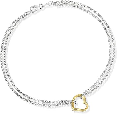 Ross-Simons Sterling Silver and 14kt Yellow Gold Heart Anklet. 10 inches