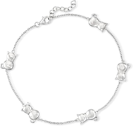 Ross-Simons Sterling Silver Cat Station Anklet. 9 inches