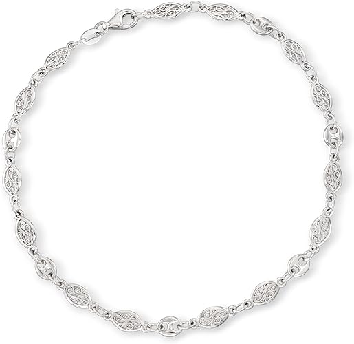 Ross-Simons Sterling Silver Navette-Style Openwork Anklet. 10 inches