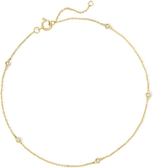 RS Pure by Ross-Simons 0.10 ct. t.w. Diamond Station Anklet in 14kt Yellow Gold. 9 inches
