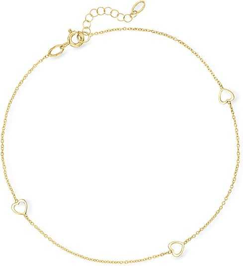 RS Pure by Ross-Simons Italian 14kt Yellow Gold 3-Heart Station Anklet. 9 inches