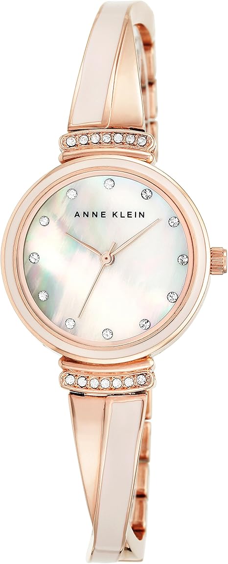 Anne Klein Women's AK/2216BLRG Premium Crystal-Accented Rose Gold-Tone and Blush Pink Bangle Watch