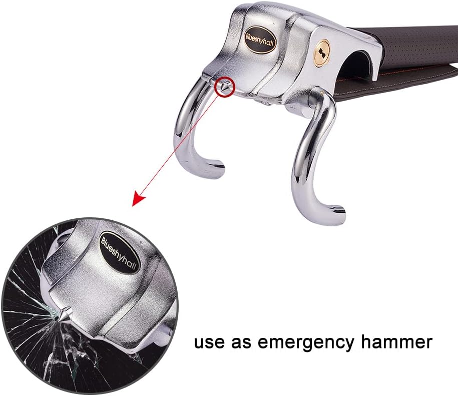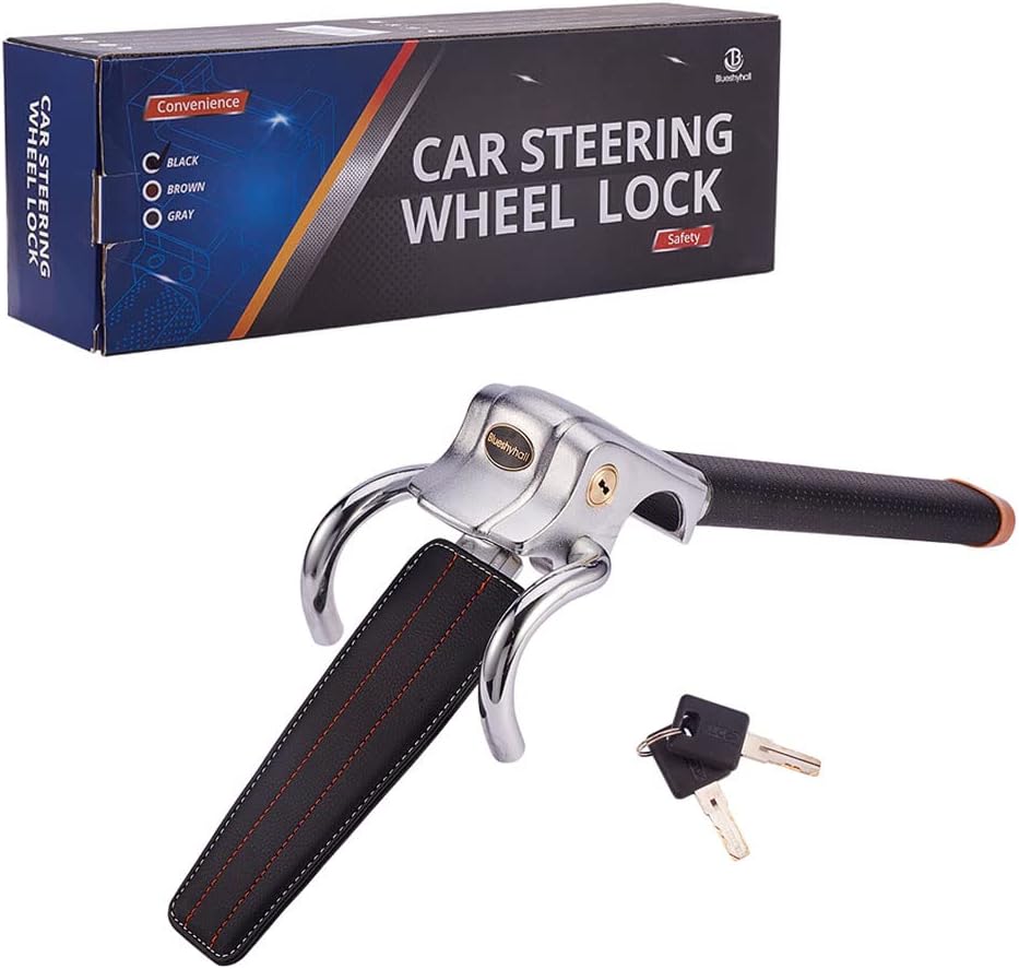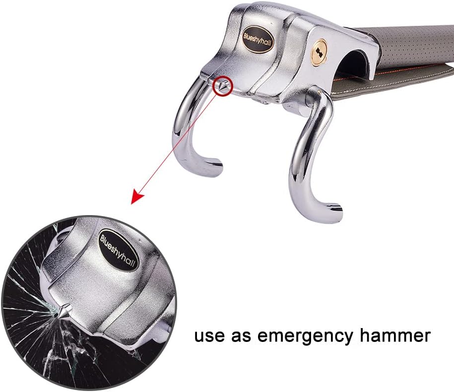 Blueshyhall Car Steering Wheel Lock, Anti-Theft Locking Devices with Safety Hammer for Auto Car Vehicle Truck SUV,Grey