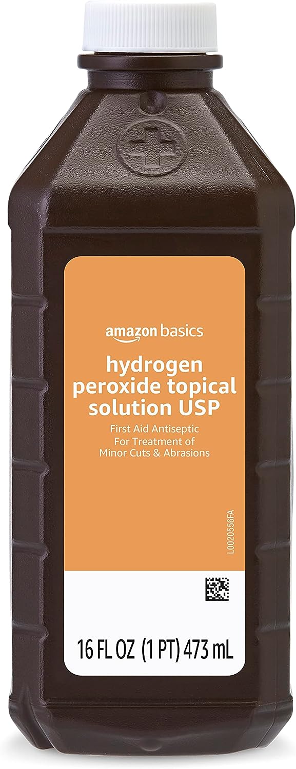 Use Amazon Basics Hydrogen Peroxide Topical Solution USP to help prevent the risk of infection from minor cuts, scrapes, and burns.