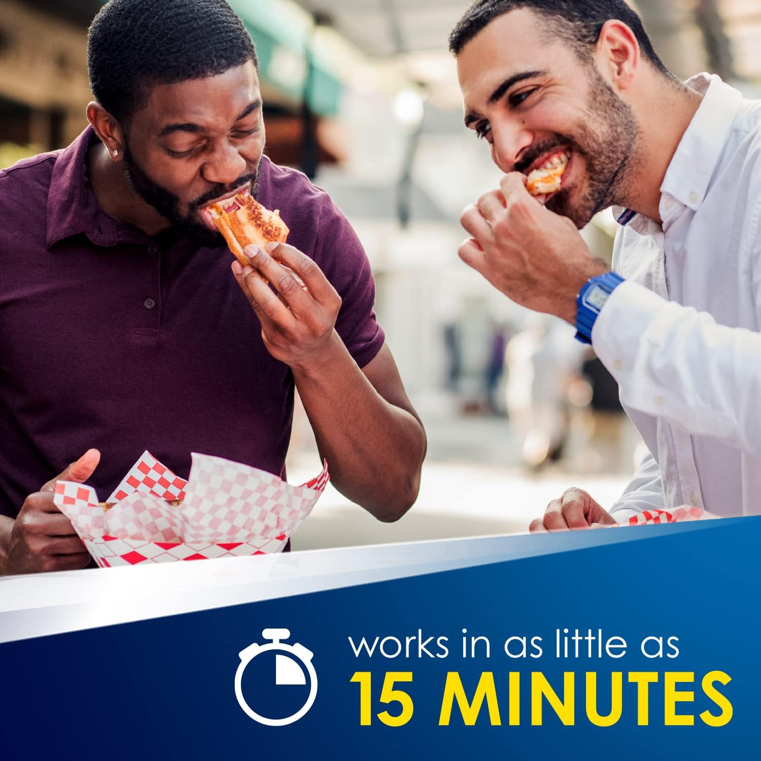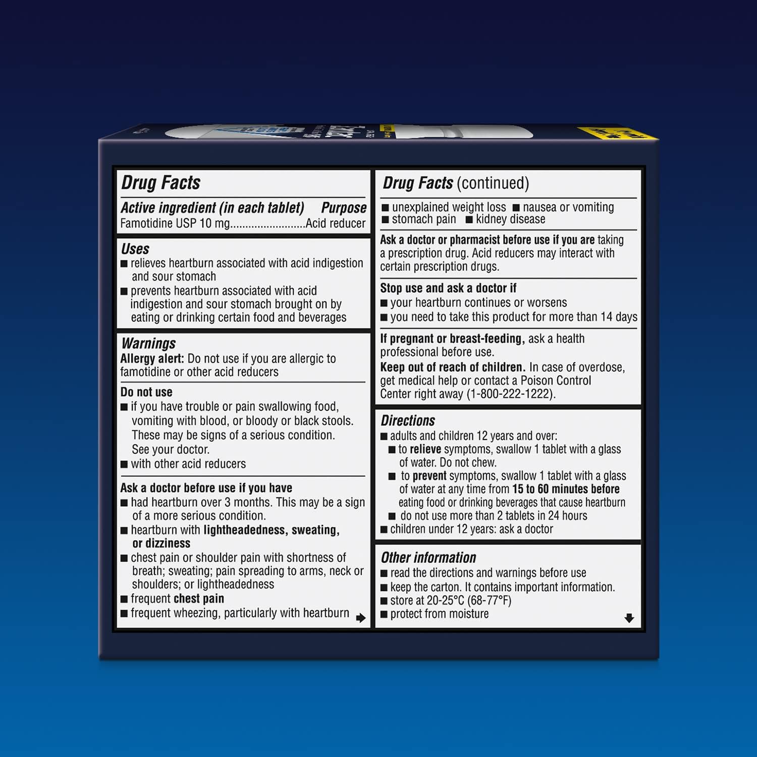 Don't let heartburn keep you from enjoying your favorite foods. Zantac 360 Original Strength tablets prevent and relieve heartburn fast so you can get ahead of uncomfortable symptoms associated with heartburn. Zantac 360 with Triple Action: prevents, relieves, and lasts. Zantac 360 starts working in as little as 15 minutes and controls stomach acid production for up to 12 hours*. Whether taken to prevent heartburn, or to relieve it, Zantac 360 over-the-counter heartburn medication gives you fast-acting, long-lasting* heartburn control that’s guaranteed or your money back†. Use as directed. *Refers to acid control. Acid control does not correlate to symptom relief. †Refers to Money Back Guarantee. Terms and Conditions apply.