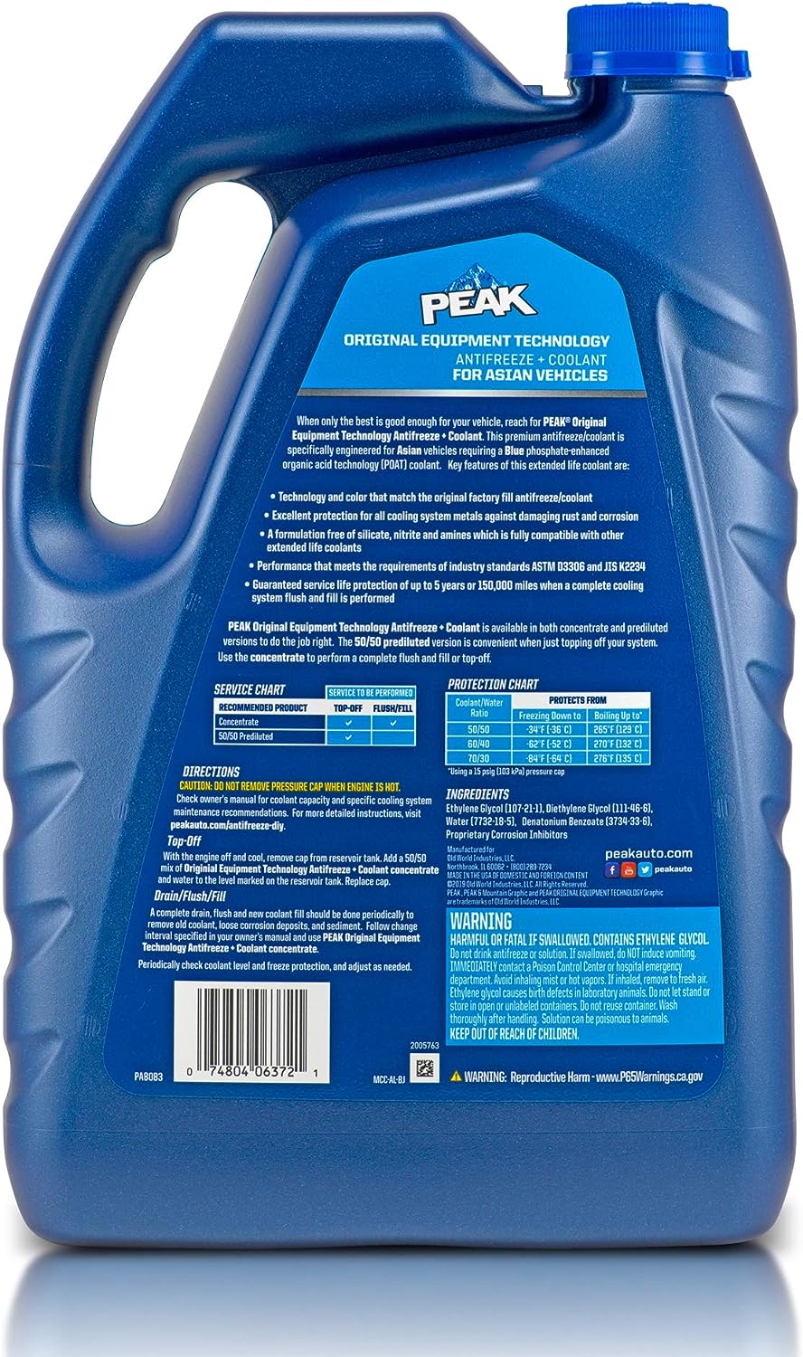 PEAK OET Extended Life Blue 50/50 Prediluted Antifreeze/Coolant for Asian Vehicles, 1 Gal.