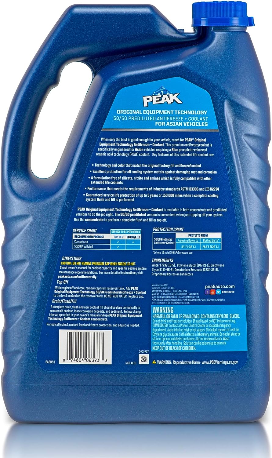 PEAK OET Extended Life Blue 50/50 Prediluted Antifreeze/Coolant for Asian Vehicles, 1 Gal.