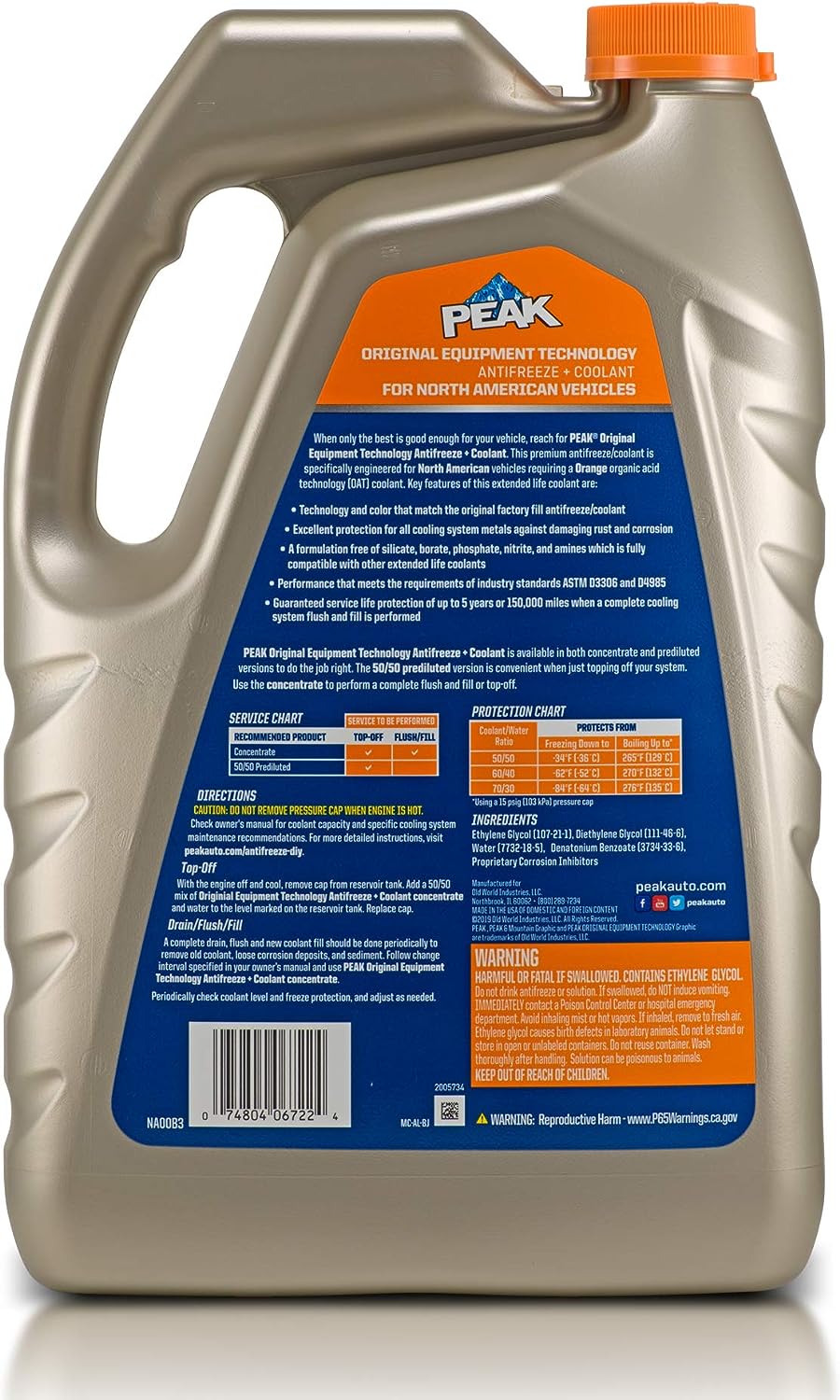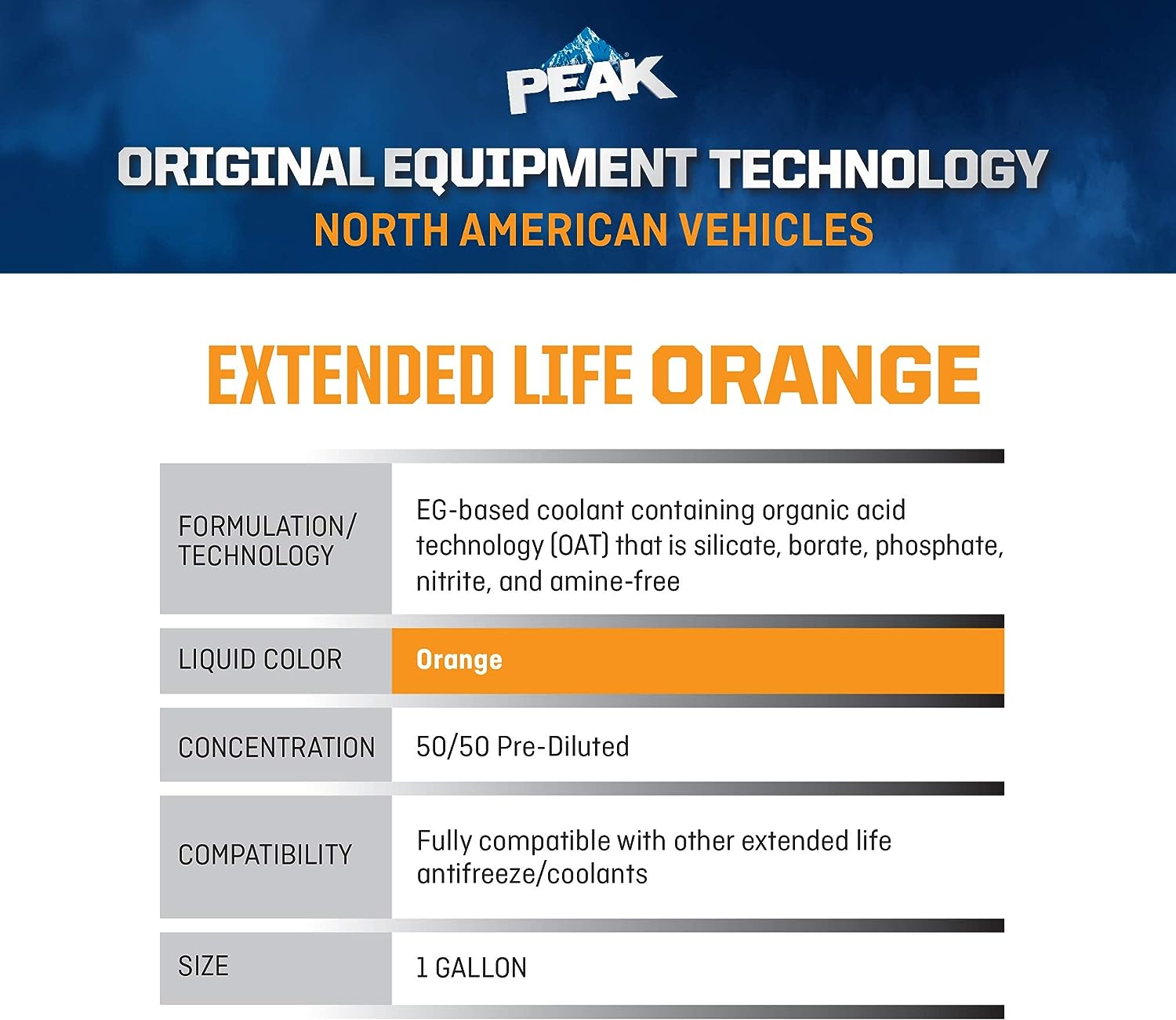 PEAK OET Extended Life Orange Concentrate Antifreeze/Coolant for North American Vehicles, 1 Gal.
