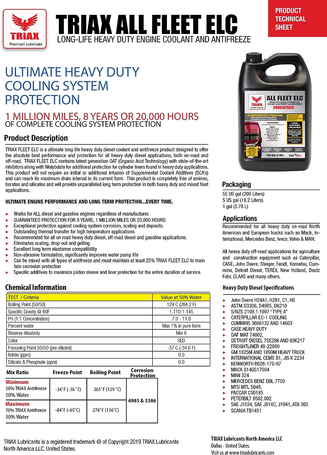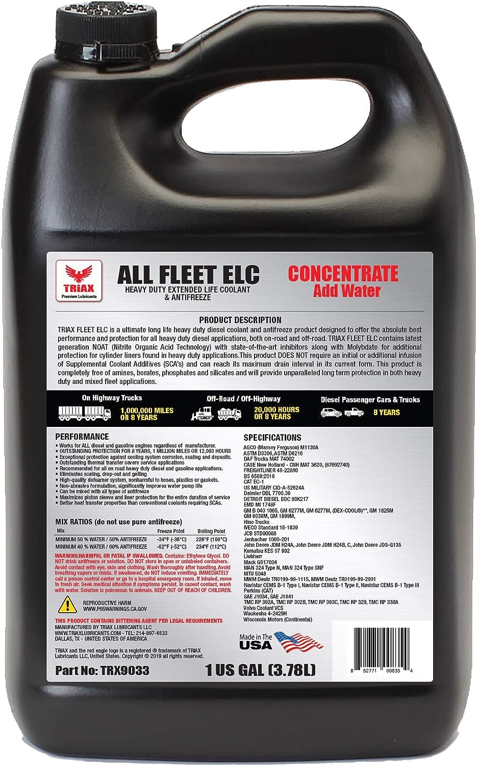 Triax All Fleet ELC Coolant & Antifreeze, Diesel Extreme HD NOAT, 1 Million Mile, 8 Year, 20,000 HRS, CAT EC-1, Concentrate (1 Gallon)