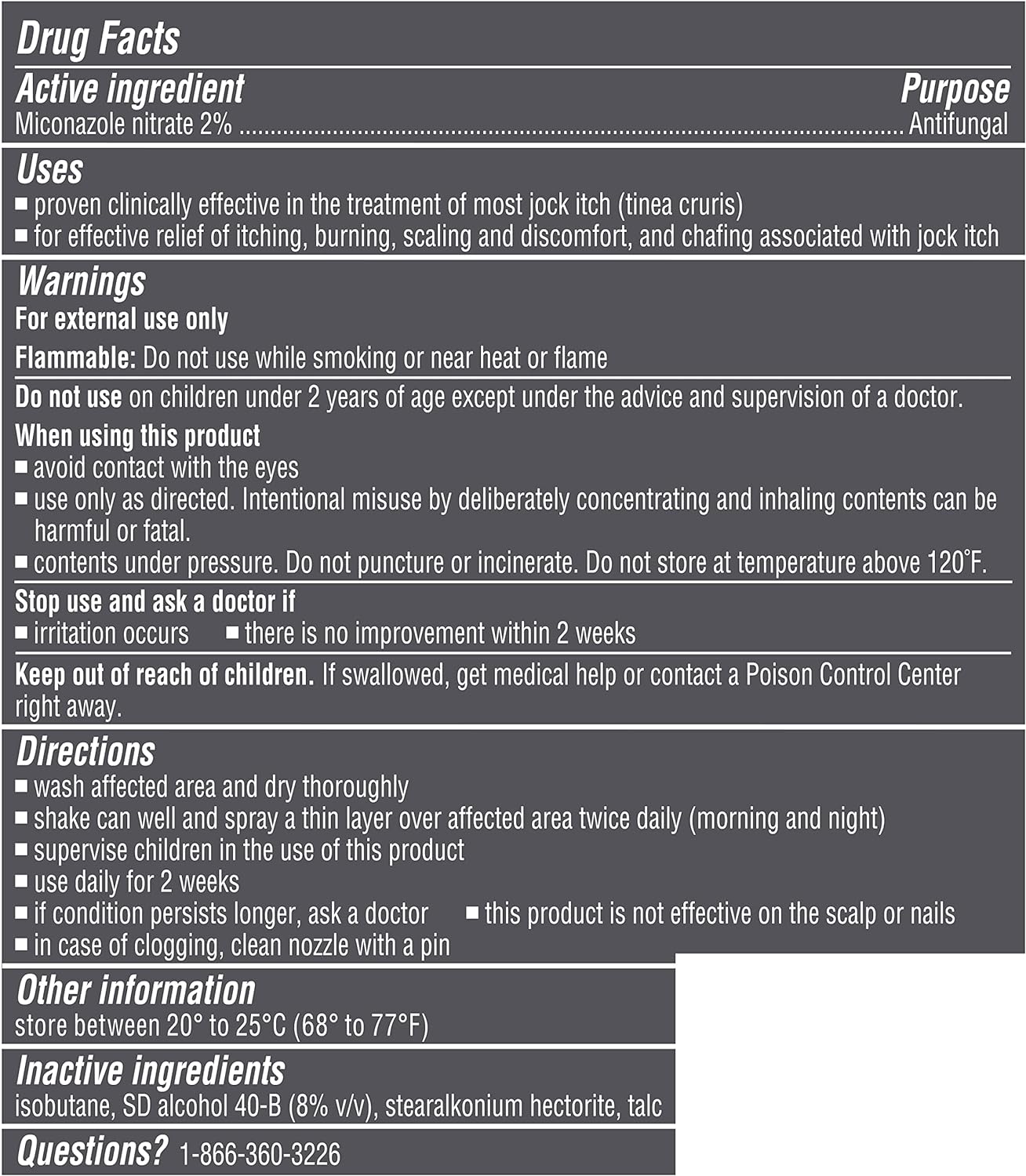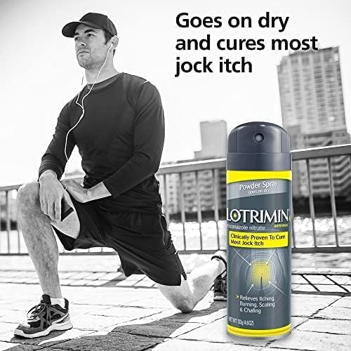 Get relief from the jock itch symptoms of itching, burning, cracking, and scaling skin with Lotrimin Jock Itch Antifungal Powder Spray. The active ingredient in this fungus treatment is miconazole nitrate, which helps to relieve the symptoms of jock itch and is clinically proven to cure most jock itch infections. Soothe itchy, cracked skin on your groin and inner thighs with this antifungal spray powder formula that’s easy to apply to the body and reach those hard-to-reach places in the crotch area of the body. Fight fungus with the power of Lotrimin AF Jock Itch Powder Spray – your tinea cruris is no match for this antifungal spray, which works to control the fungus that causes jock itch. Safe for kids over 2. Covered by the Bayer HealthCare LLC – Consumer Health 60-Day Satisfaction Guarantee. See below for details.