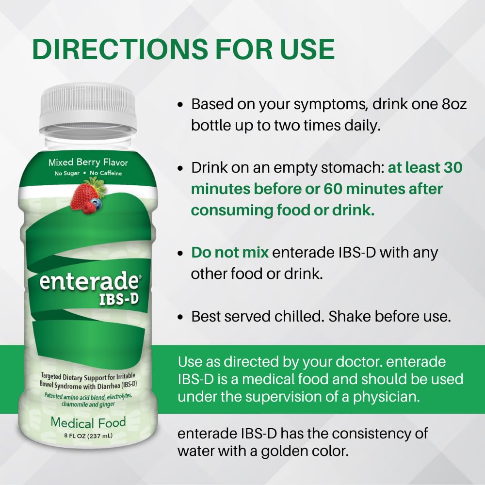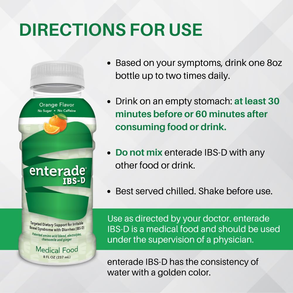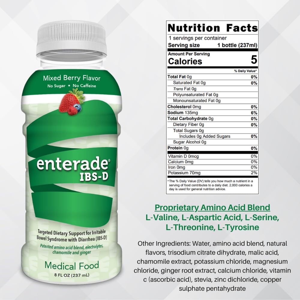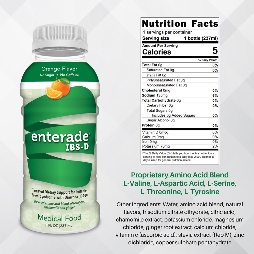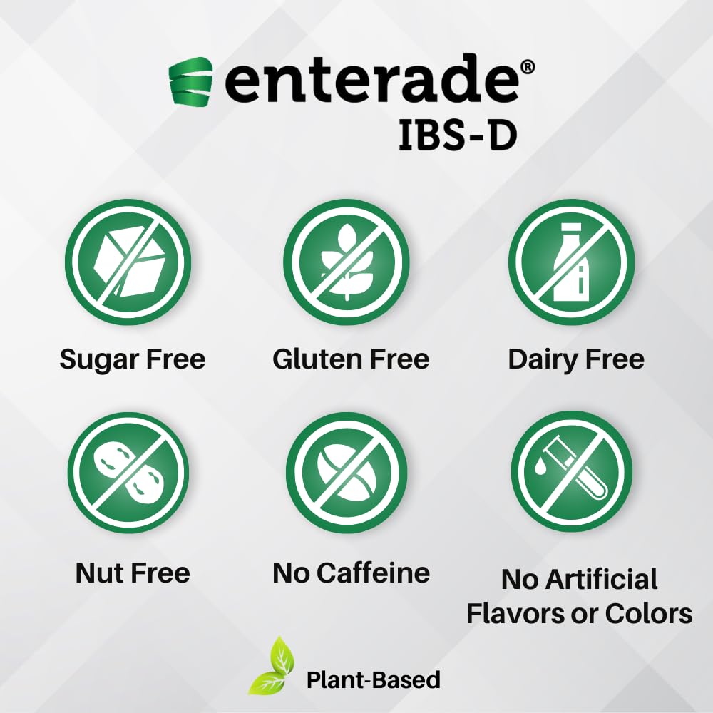 • Non-prescription, Plant-based Beverage: Specifically formulated with a patented blend of plant-based amino acids, electrolytes, and minerals. Add enterade IBS-D to your routine for better symptom control.