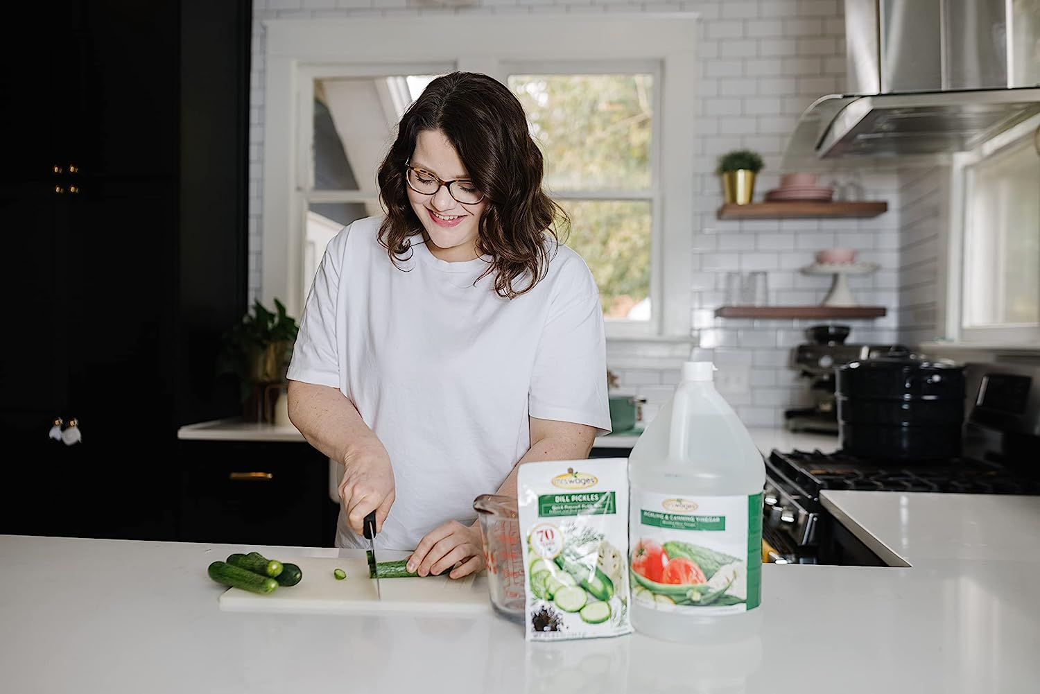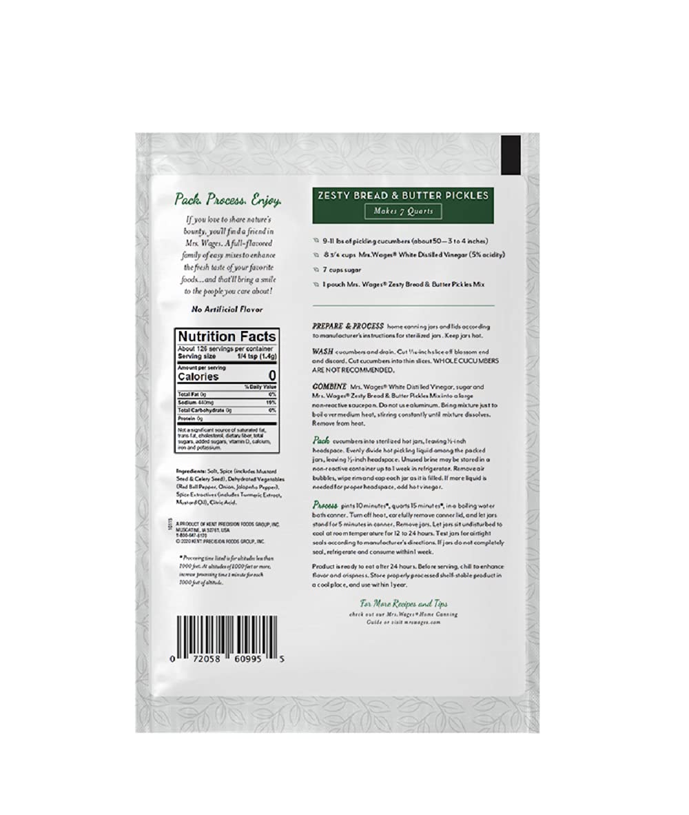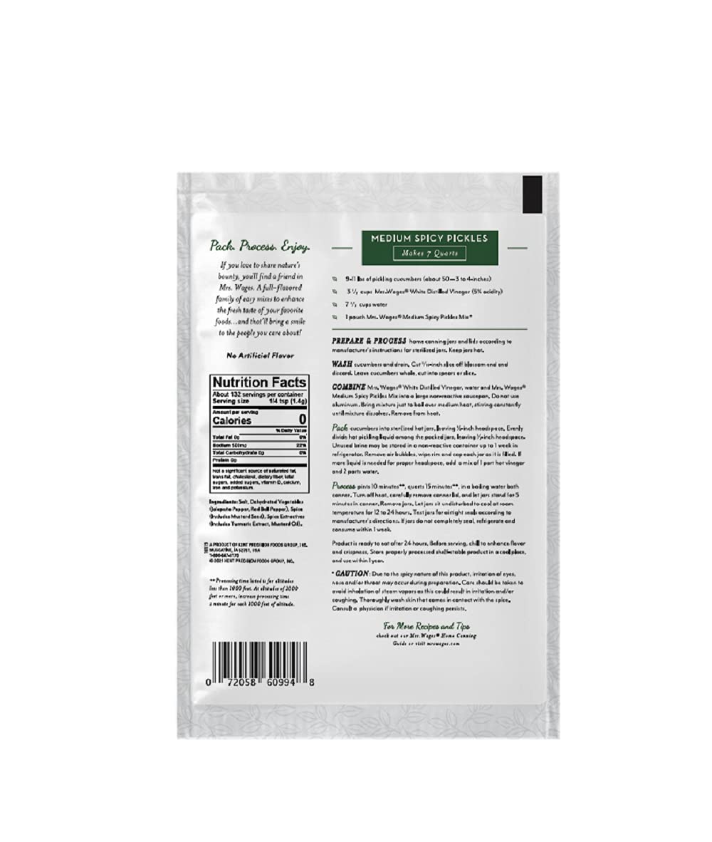 Enjoy the robust flavor of a dill pickle with garlic. This mix contains herb and spice components and all you need to do is just add vinegar and water through the canning process. Each pouch makes 7 quarts of crisp, crunchy pickles — the best price and quality value in canning. Before beginning any canning project, be sure to familiarize yourself with the process, the equipment you need and the ingredients. A boiling water bath method is used for the quick process recipes. The pickles are ready to eat 24 hours after preparation.