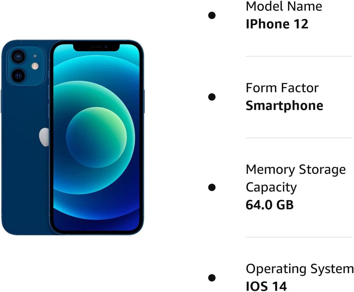 Apple iPhone 12, 64GB, Blue - Unlocked (Renewed Premium)