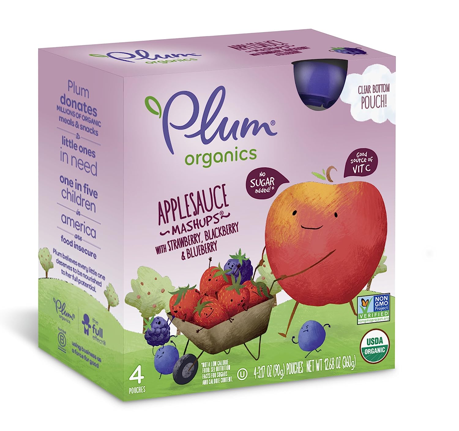 Plum Organics Applesauce Mashups bring together a perfect blend of fruits and veggies to create a deliciously nutritious snack that your kids will love. We only use certified organic, non-GMO ingredients with no added sugar & free of high fructose corn syrup, trans fats and artificial ingredients to ensure the highest quality product for your little one. Comes in convenient, portable and resealable pouches that are perfect for lunchboxes, snacktime, or anywhere when on-the-go! Ships as a bundle of 6 boxes with 4 pouches each (24 pouches total). At Plum Organics, we're not just delivering nourishing, organic food to your little ones. We’re making the world a better place. As a B we believe in using business as a force for good, and that includes our commitment to sustainability. Plum was founded in 2007, when a small group of parents came together and reimagined the baby food category as we know it today. We introduced the first spouted baby food pouch, with a mission of inspiring a lifetime of healthy eating from the very first bite.