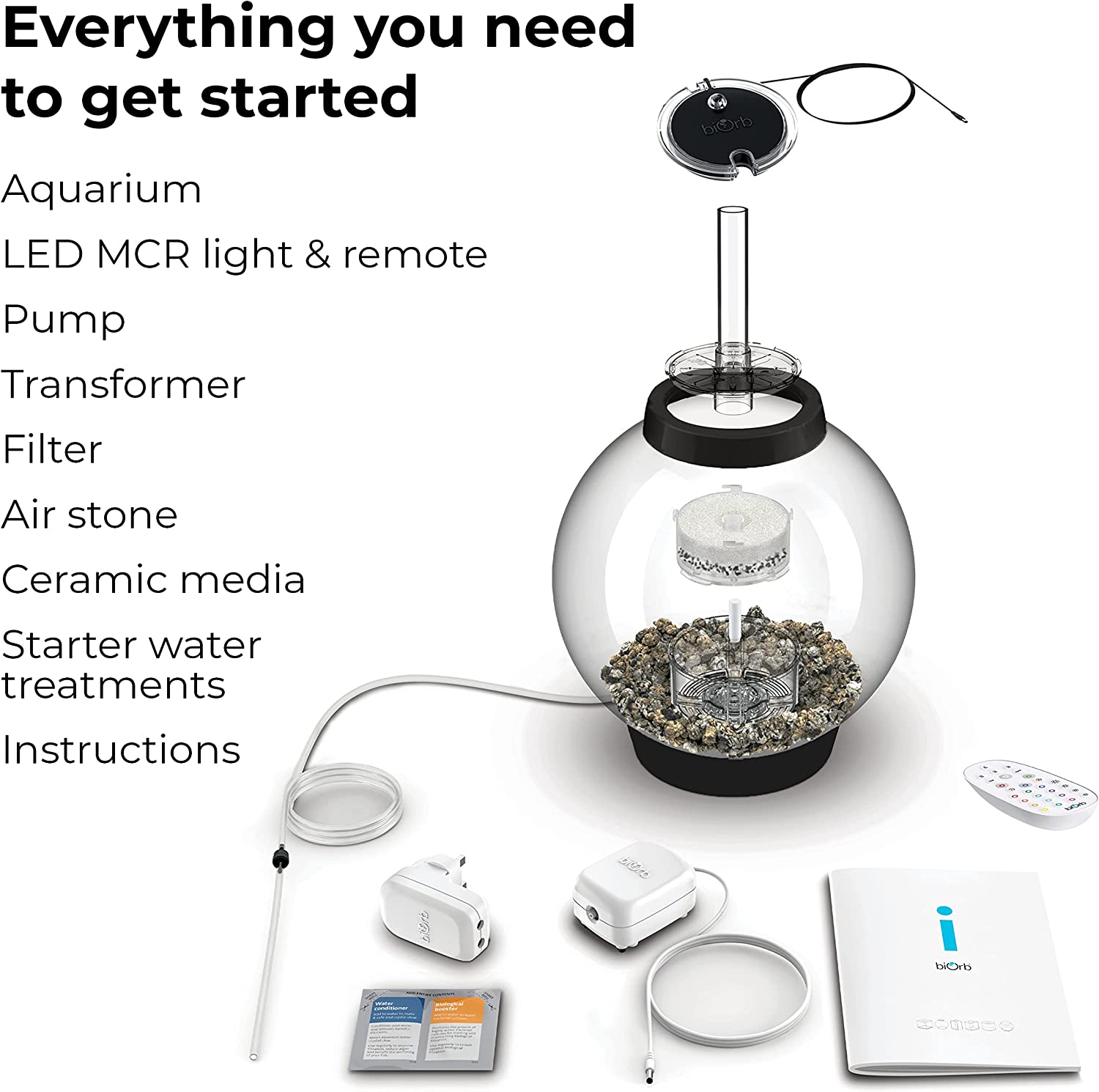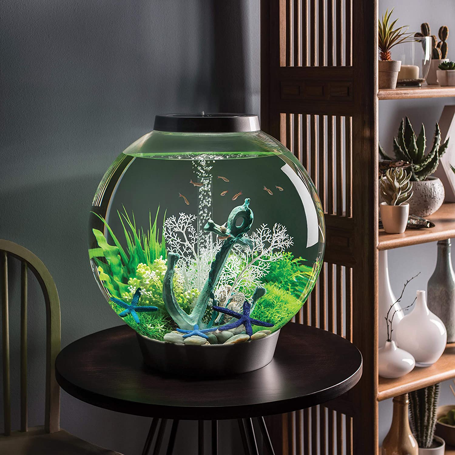 These breathtaking underwater worlds add a sense of joy and wonder to your home. With chic and minimalist design, a biOrb CLASSIC 60 aquarium makes it effortless for you to elevate any space. This 16-Gallon acrylic aquarium is inspired by the simple beauty of a classic fishbowl, a 360-degree view so you can admire all aspects of your biOrb. This biOrb CLASSIC has a bold silver lid and base that create a stylish finished look to this unique aquarium. Everything you need to start your new hobby is included: low voltage pump, LED lighting, filtration, and manual. All biOrb aquariums are made from acrylic, which is 10 times stronger and 23% clearer than glass. Acrylic is also a good insulator, so you don't lose as much heat as you would with a glass aquarium. The standard white LED lighting will give your biOrb a classic ambiance. The lighting has an easy on and off switch. The 5-step Filtration ensures clear, healthy water with biological, mechanical and chemical filtration, water stabilization and oxygenation. Unlike most aquariums, a biOrb's filter is fitted at the bottom of the aquarium, because fish waste sinks. The ceramic media that surrounds the filter provides a large surface area for beneficial bacteria. With quick and easy set-up, you'll soon be setting your creativity free and decorating your biOrb with the endless combinations of biOrb aquarium decorations (sold separately). Additionally, biOrb aquariums are designed for easy maintenance and easy access to feed your fish. Depending on your choice of fish species, you may only need around 15 minutes of maintenance per month using the biOrb Service Kit (sold separately). The aquarium is backed by a 2-year warranty. Enjoy the priceless gift of nature's wonder in your home with biOrb.