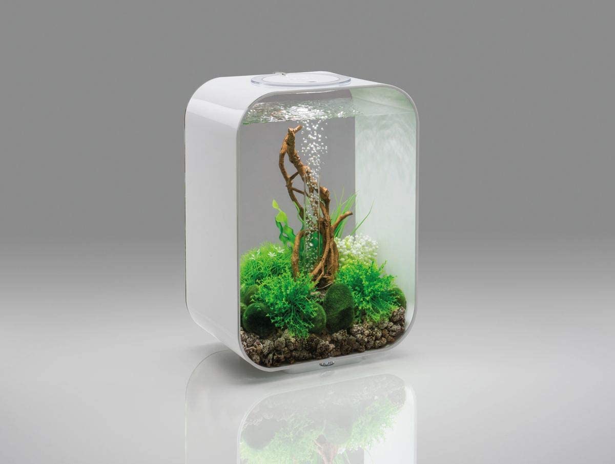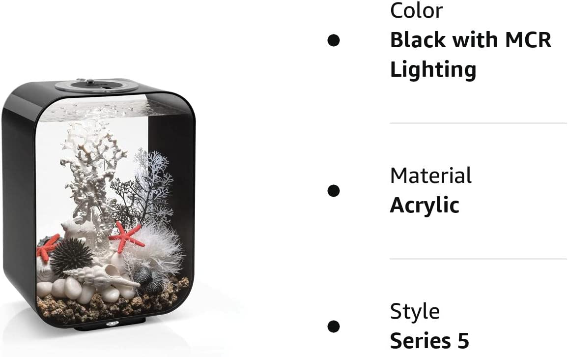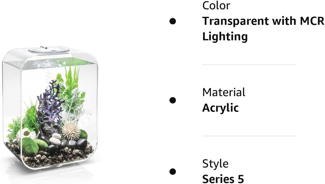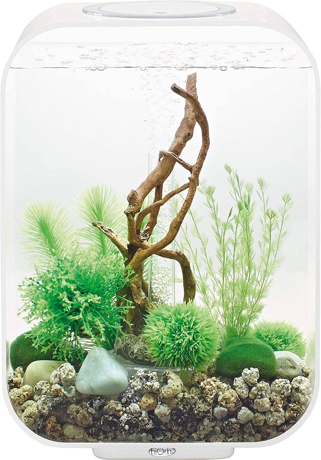 These breathtaking underwater worlds add a sense of joy and wonder to your home. With chic and minimalist design, a biOrb LIFE 15 MCR aquarium makes it effortless for you to elevate any space. This 4-Gallon acrylic aquarium is designed to perfectly frame your biOrb so you can admire your fish and décor. This biOrb LIFE has a bright white color trim, adding drama to this aquarium style's framing effect. The platform base creates a stylish finished look to this unique aquarium. Everything you need to start your new hobby is included: low voltage pump, LED Multi-color Remote-controlled (MCR) lighting, filtration, and manual. All biOrb aquariums are made from acrylic, which is 10 times stronger and 23% clearer than glass. Acrylic is also a good insulator, so you don't lose as much heat as you would with a glass aquarium. The MCR light will change how you experience biOrb. Choose from 16 preset colors and control the brightness of the light. You can even set an automatic day and night light cycle. There's a setting to suit every mood and add to your sense of well-being. The 5-step Filtration ensures clear, healthy water with biological, mechanical and chemical filtration, water stabilization and oxygenation. Unlike most aquariums, a biOrb's filter is fitted at the bottom of the aquarium, because fish waste sinks. The ceramic media that surrounds the filter provides a large surface area for beneficial bacteria. With quick and easy set-up, you'll soon be setting your creativity free and decorating your biOrb with the endless combinations of biOrb aquarium decorations (sold separately). Additionally, biOrb aquariums are designed for easy maintenance and easy access to feed your fish. Depending on your choice of fish species, you may only need around 15 minutes of maintenance per month using the biOrb Service Kit (sold separately). The aquarium is backed by a 2-year warranty. Enjoy the priceless gift of nature's wonder in your home with biOrb.