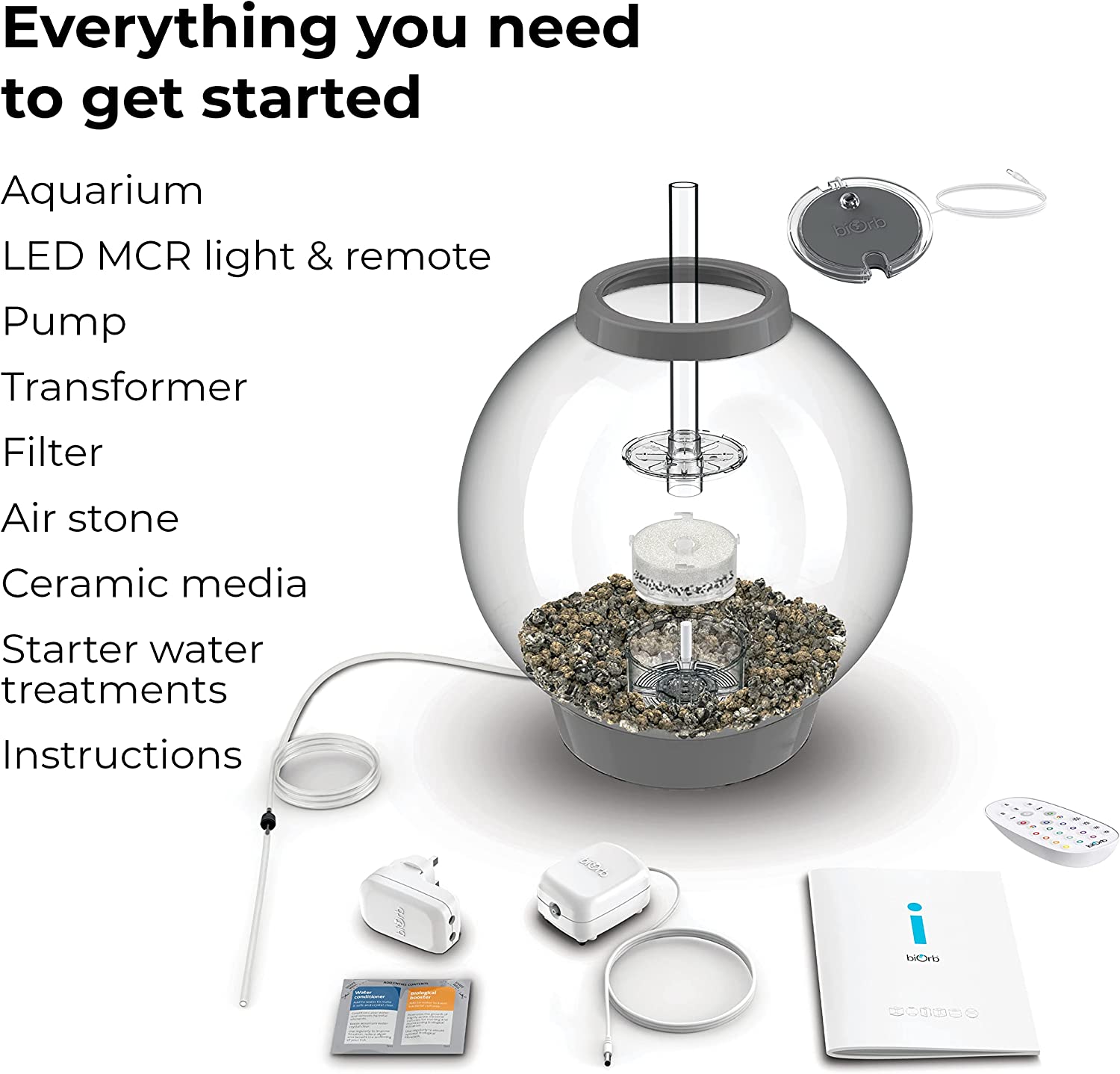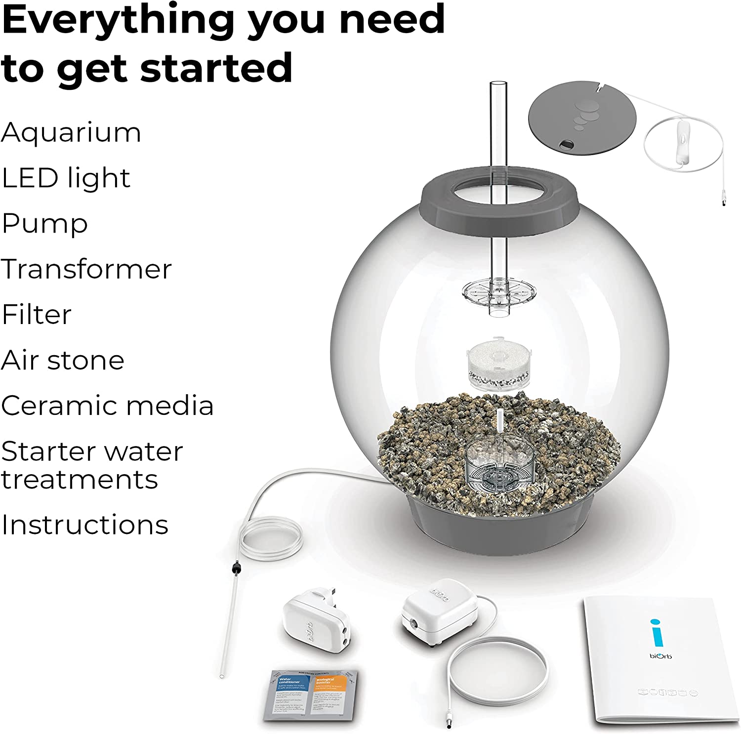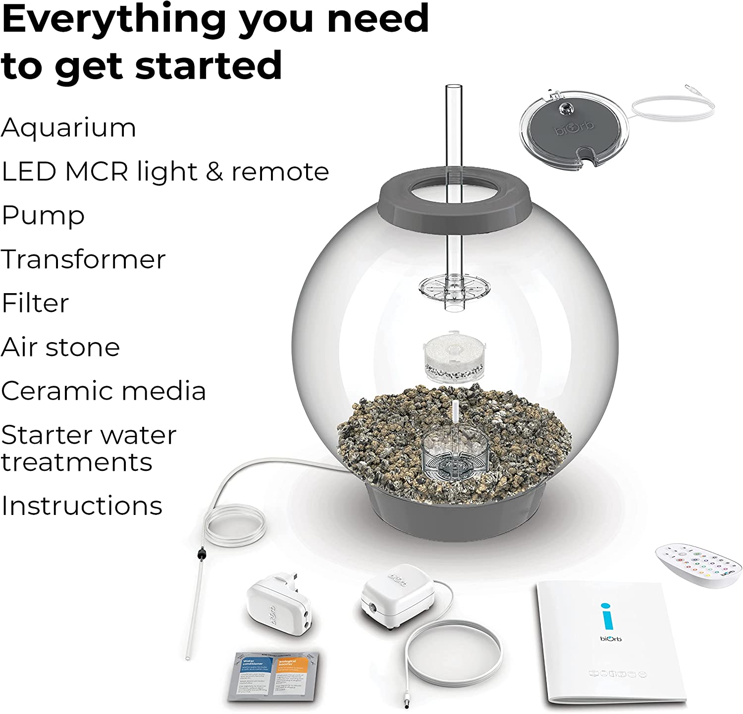 These breathtaking underwater worlds add a sense of joy and wonder to your home. With chic and minimalist design, a biOrb CLASSIC 60 aquarium makes it effortless for you to elevate any space. This 16-Gallon acrylic aquarium is inspired by the simple beauty of a classic fishbowl, a 360-degree view so you can admire all aspects of your biOrb. This biOrb CLASSIC has a bold black lid and base that create a stylish finished look to this unique aquarium. Everything you need to start your new hobby is included: low voltage pump, LED lighting, filtration, and manual. All biOrb aquariums are made from acrylic, which is 10 times stronger and 23% clearer than glass. Acrylic is also a good insulator, so you don't lose as much heat as you would with a glass aquarium. The standard white LED lighting will give your biOrb a classic ambiance. The lighting has an easy on and off switch. The 5-step Filtration ensures clear, healthy water with biological, mechanical and chemical filtration, water stabilization and oxygenation. Unlike most aquariums, a biOrb's filter is fitted at the bottom of the aquarium, because fish waste sinks. The ceramic media that surrounds the filter provides a large surface area for beneficial bacteria. With quick and easy set-up, you'll soon be setting your creativity free and decorating your biOrb with the endless combinations of biOrb aquarium decorations (sold separately). Additionally, biOrb aquariums are designed for easy maintenance and easy access to feed your fish. Depending on your choice of fish species, you may only need around 15 minutes of maintenance per month using the biOrb Service Kit (sold separately). The aquarium is backed by a 2-year warranty. Enjoy the priceless gift of nature's wonder in your home with biOrb.