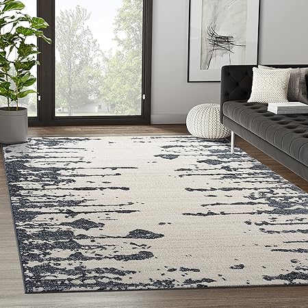 Abani Modern Rugs Ink Splatter Design Cream & Black Area Rug - Contemporary Print 4_Ü_ x 6_Ü_ Non-Shed Living Room Rug