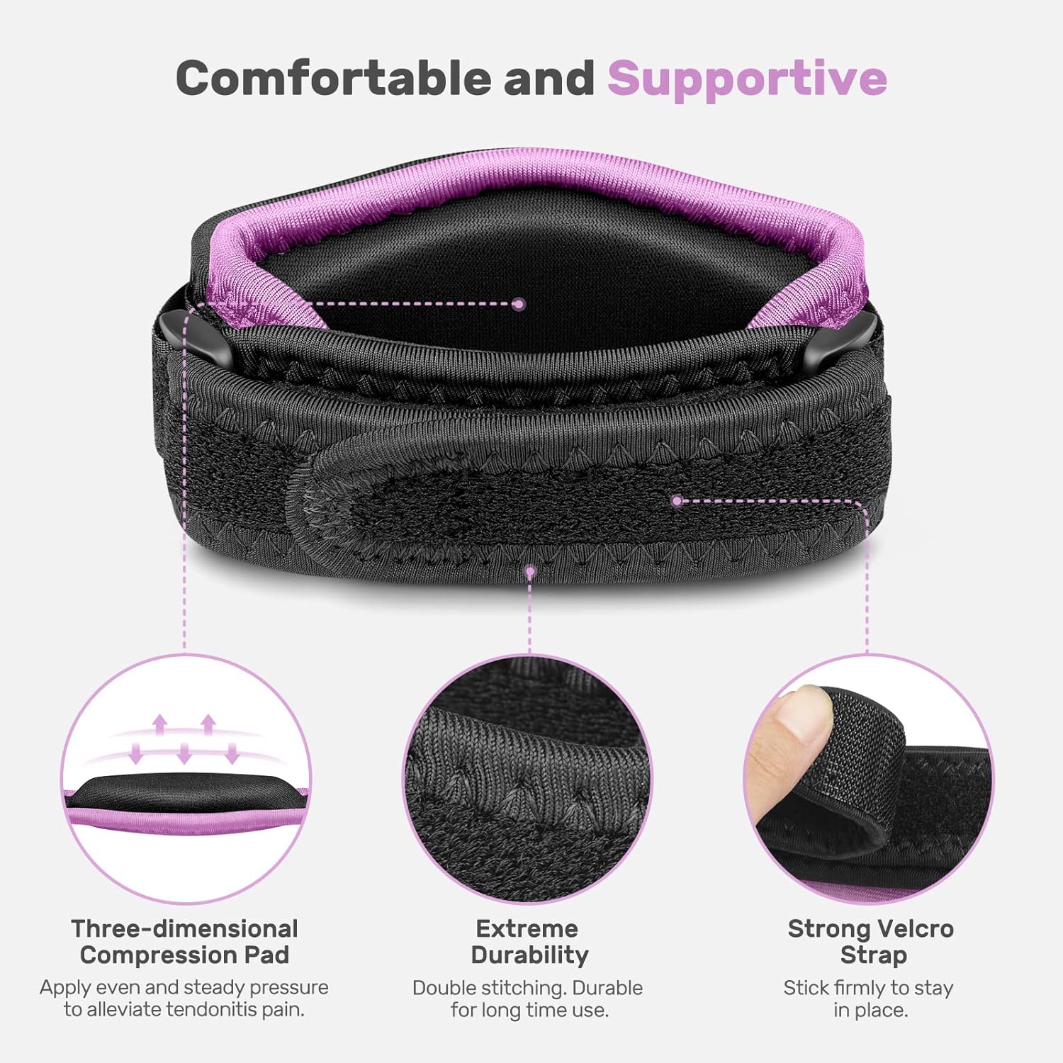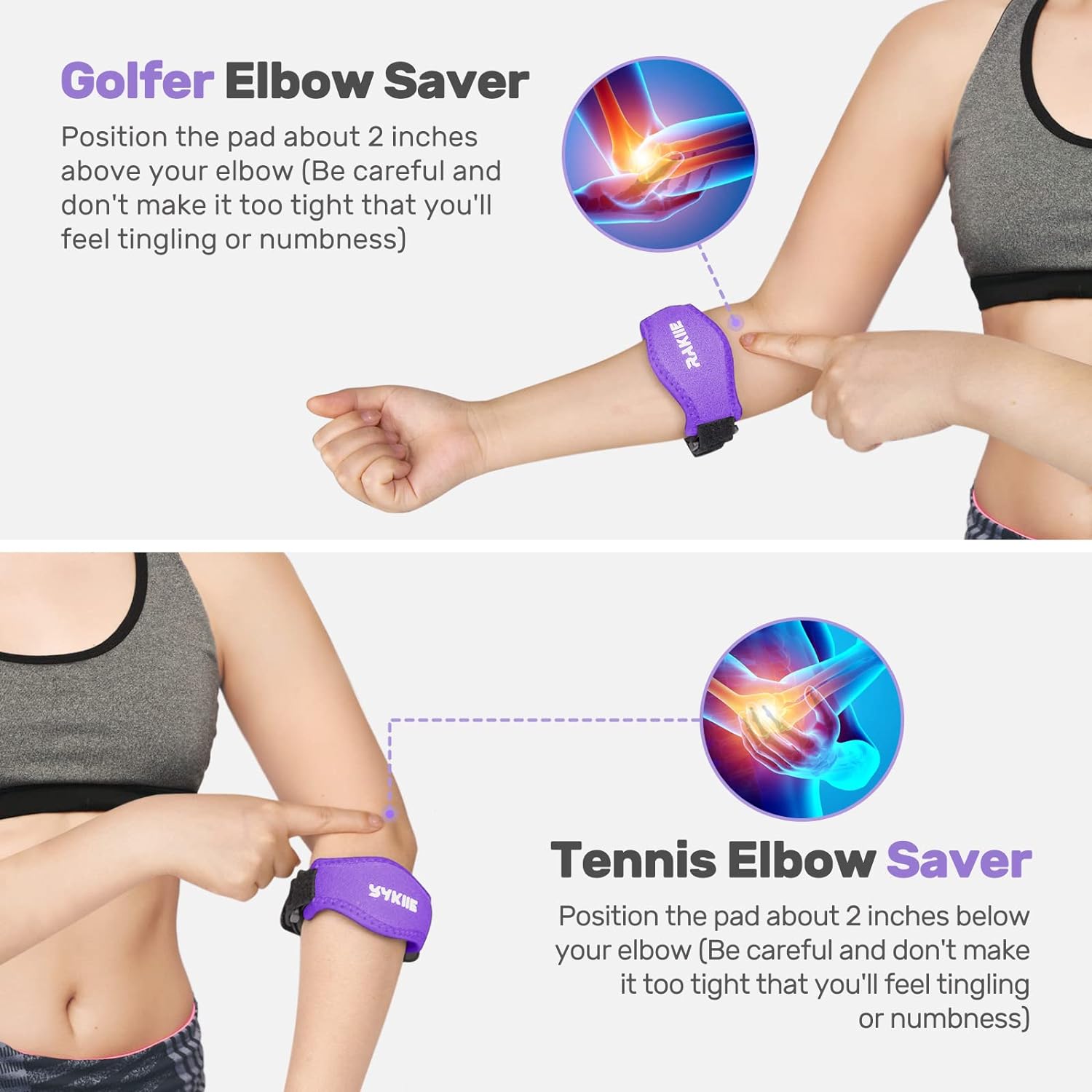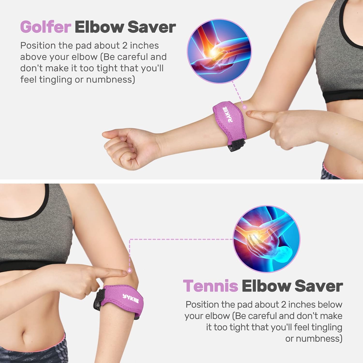 • 【Easy to Put on 】Position the pad about an inch below your elbow, then adjust the straps to lock, be care no so tight that you feel tingling or numbness.