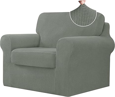 CHUN YI 3 Piece Armchair Sofa Cover, Stretch 1 Seater Couch Slipcover with 1 Separate Backrest and Cushion with Elastic Band, Checks Spandex Jacquard Fabric(Small, Dove Gray)