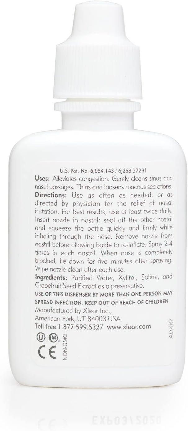 • EASY TO USE DIRECTIONS: Clear the nasal passage by gently blowing your nose. Insert nozzle into nostril and squeeze bottle while breathing in. Spray 2-4 times in each nostril. When nose is completely blocked, lie down for five minutes after spraying. Clean nozzle after use & replace safety cap. Use at least twice daily - morning & night. Xlear is safe to use as often as needed for optimal health to cleanse sinuses and nasal passages. Can be used as drops for children.