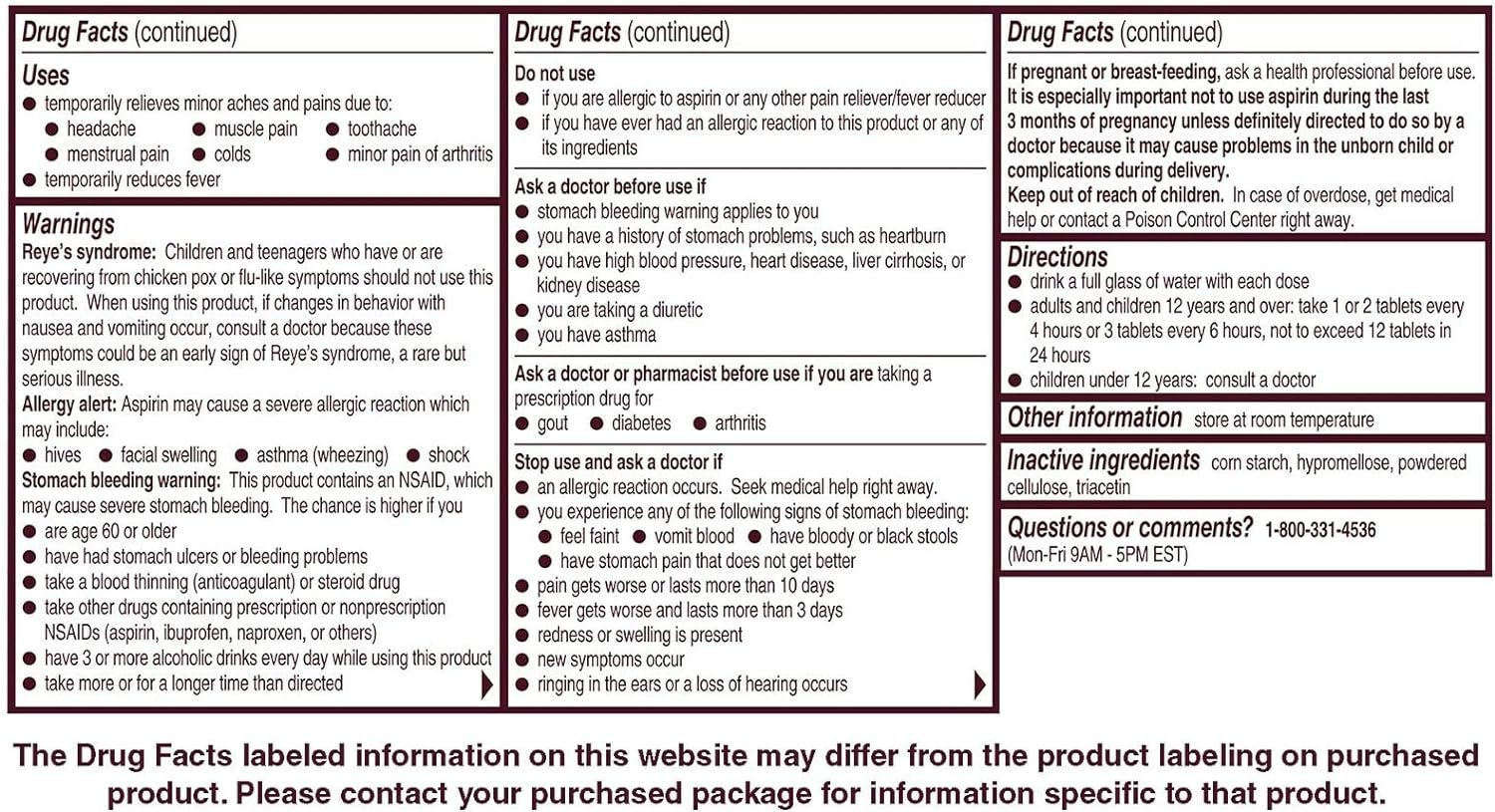 Bayer 325 mg Coated Tablets (500 Count)