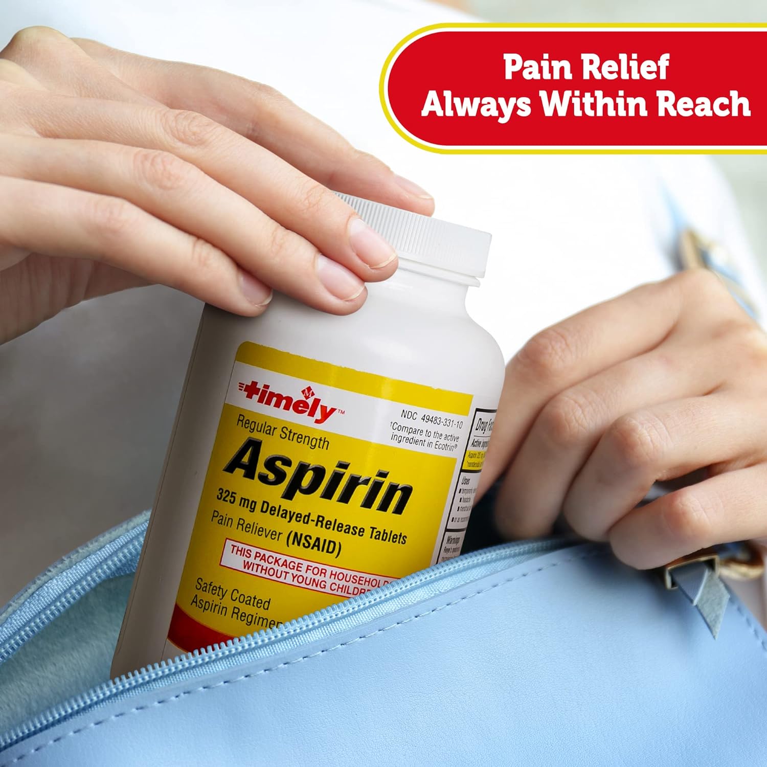 Timely Regular Strength Aspirin 325mg - 1000 Enteric Safety Coated Tablets - Compare to The Active Ingredient in Ecotrin - Pain Reliever for Minor Aches and Pains, Fever Reducer - Made in USA