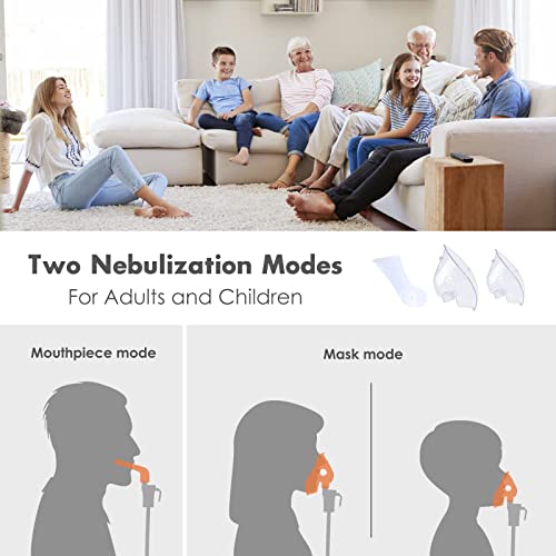 • 【Two Nebulization Modes】In order to achieve different nebulization needs, we provide mouthpiece mode and mask mode to use our nebulizer, which can be easily nebulized whether sitting or lying down.