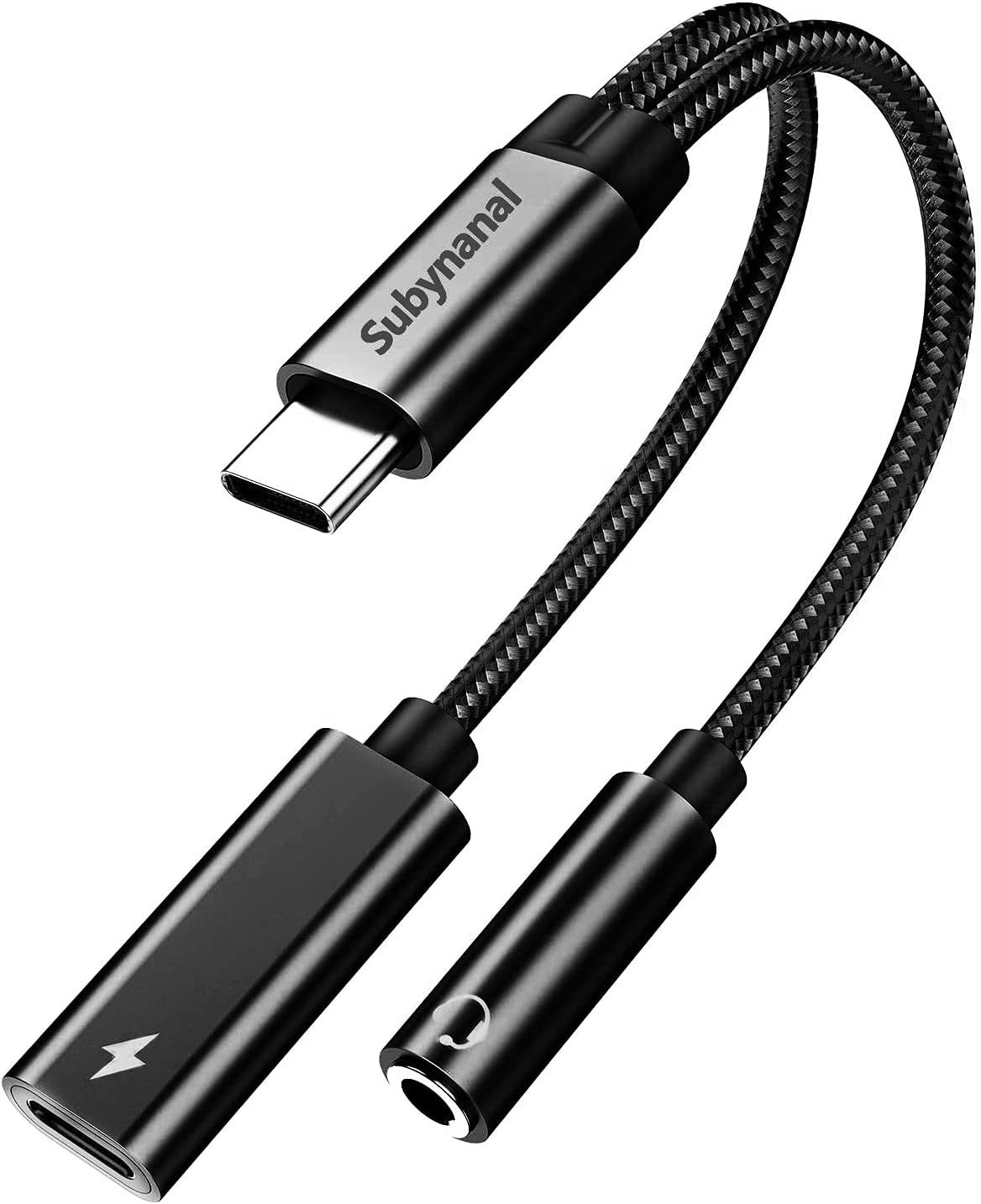 USB c to 3.5mm Headphone and Charger Adapter,2-in-1 USB C PD 3.0 Charging Port to Aux Audio Jack and Fast Charging Dongle Cable Cord Compatible with Samsung Galaxy S22 S21 S20 , Google Pixel 4 3 XL