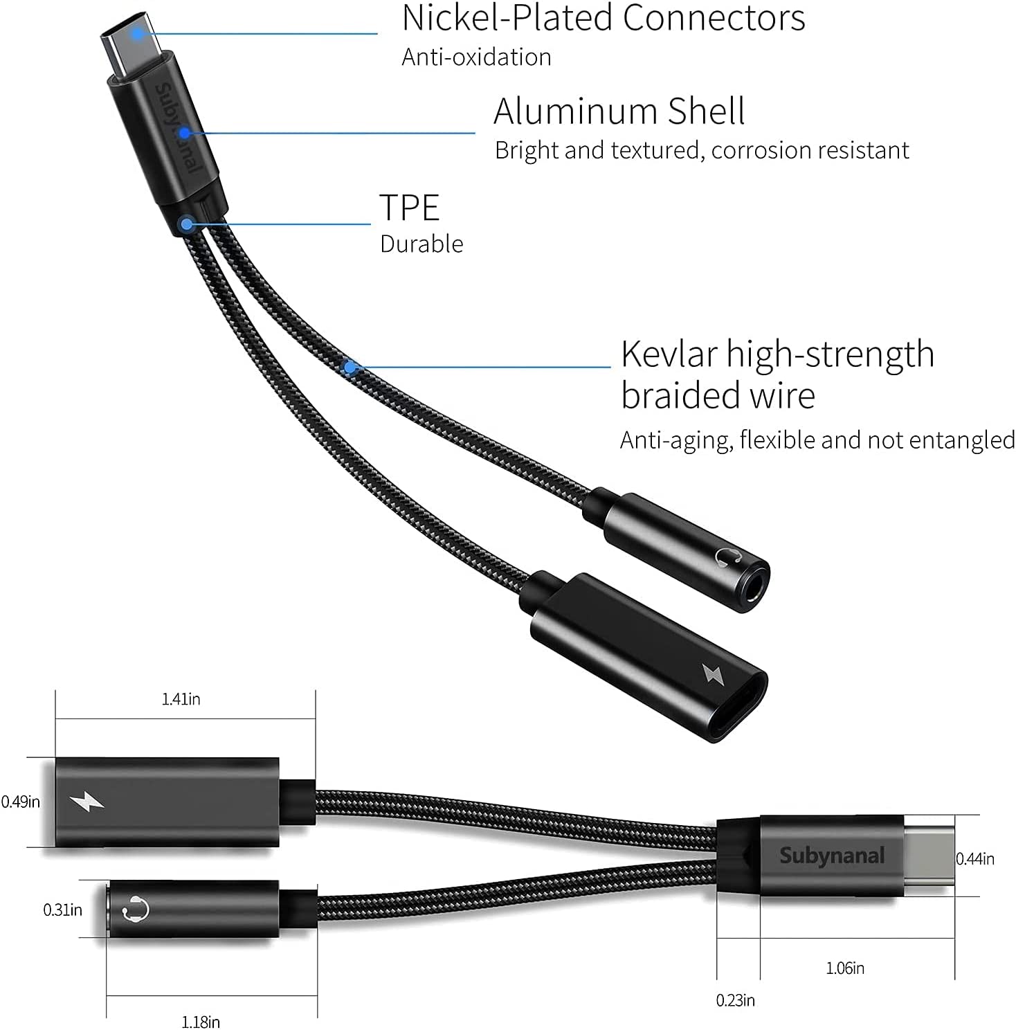 • 【2 in 1 USB C to 3.5mm adapter】With the USB C to 3.5mm audio charger adapter,you can listen to your music while charging your phone,This multiple functionality usb type-c to 3.5mm adapter supports music playback and calling for most USB C devices,And supports volume control while fast-charging your device.NOTE: Does NOT support data transfer.