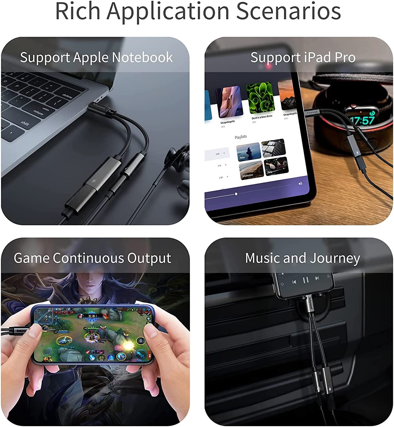 • 【Supports Fast Charging】This usb c headphone adapter and charger support up to 60W PD Charging,NOTE: It may not support QC for some new phones. Suggest using PD wall charger to get faster charging speed.The multi-function usb c to aux adapter compatible with CTIA and OMTP.