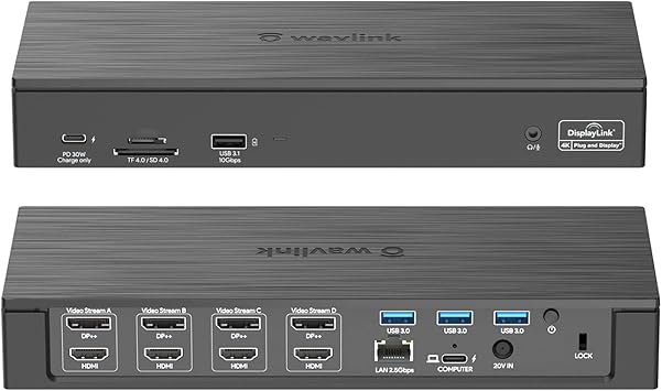 WAVLINK Quad Monitor USB C Docking Station with 4 HDMI, 4 Displayport, 18-in-1 Laptop Dock Compatible for Mac Windows Thunderbolt 4/3, 180W Power, 2.5G Ethernet, 3 USB3.0, 1 USB3.1, SD/TF, Audio/Mic