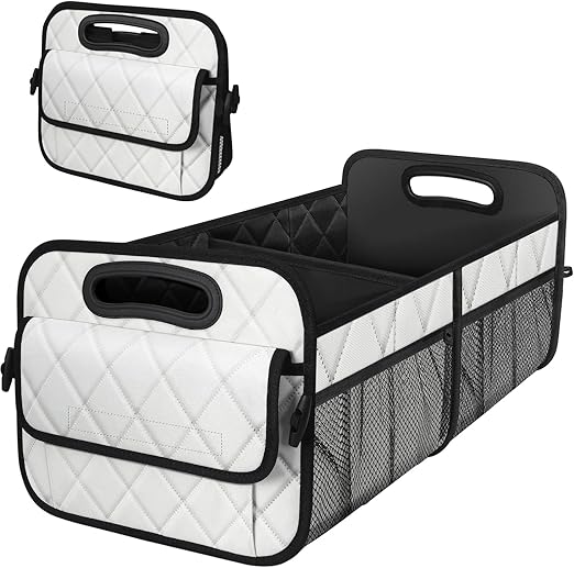 Deosk Trunk Organizer with 6 Pockets - Car Storage Accessory for SUVs, Minivans, and Trucks - 50L Waterproof Polyester (Medium, Beige)