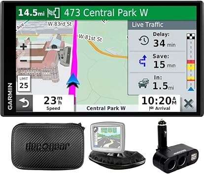 Garmin 010-N2038-02 Drivesmart 65T GPS Navigator (Renewed) | Official USA Partner Model | Bundle with Dual DC12V/24V Electronic Car Socket, Universal Weighted & Deco Gear Hard EVA Case with Zipper