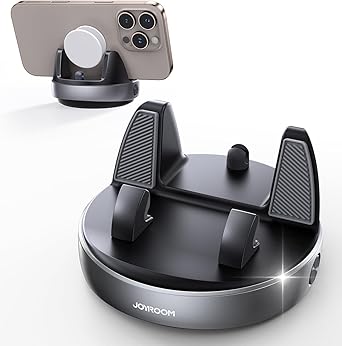 JOYROOM Phone Mount for Car, [Adjustable Spring Design] Dashboard Cell Phone Holder, 360ÎçRotatable & Vertical 30ÎçAdjustable Phone Holder for Car, Compatible with Smartphone, Sliver