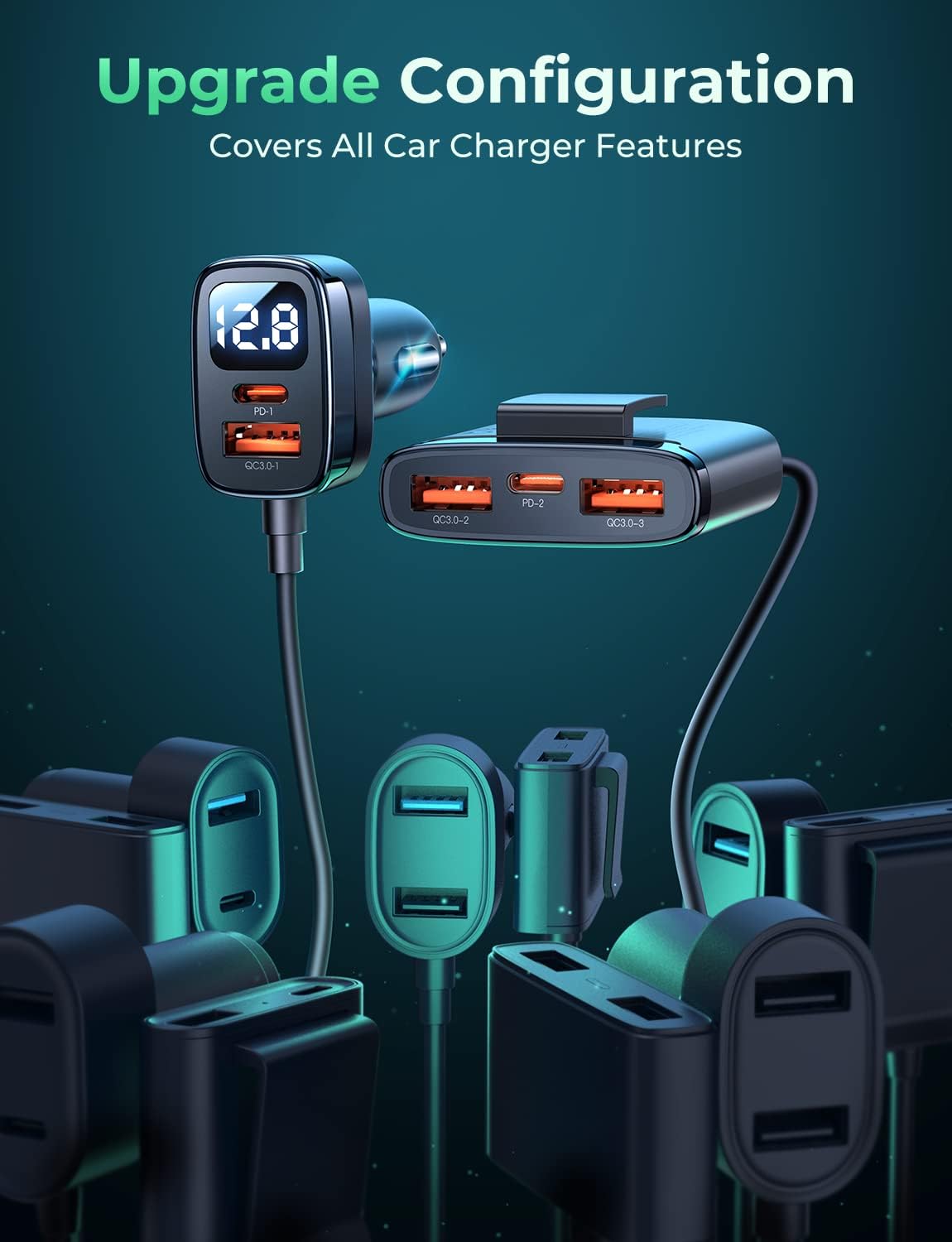 • 👍Creative Back Clip Design: No more struggle with the mess in car cables, TOLLEFE multi USB car charger with solid back row flexible clip, set 3 extra back seat car USB adapter any spot you like.