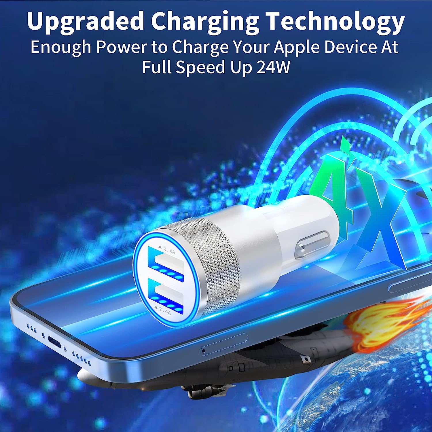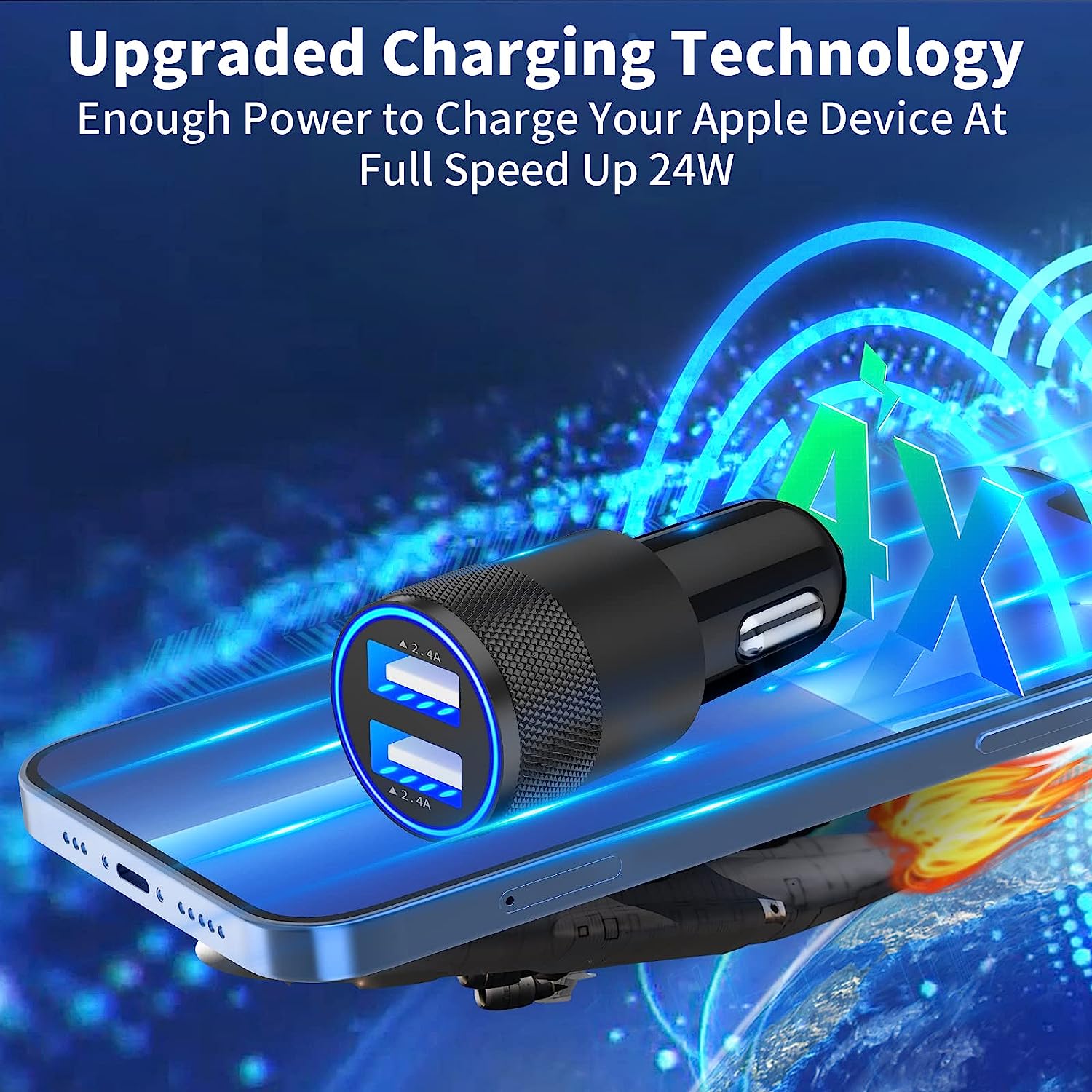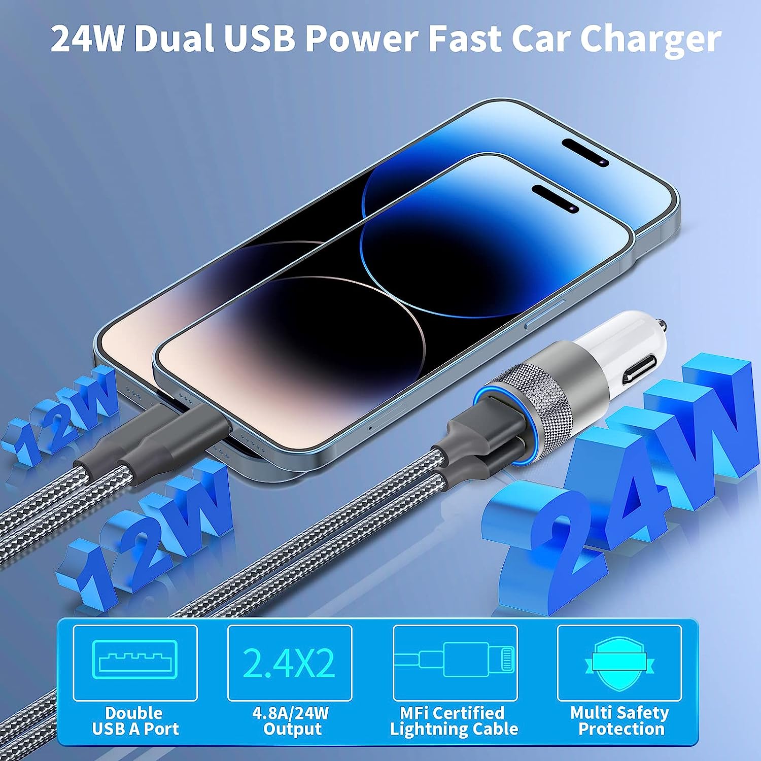 MFi Certified 4.8A/24W Dual USB Power Port Fast Car Charger for iPhone/iPad/Airpods