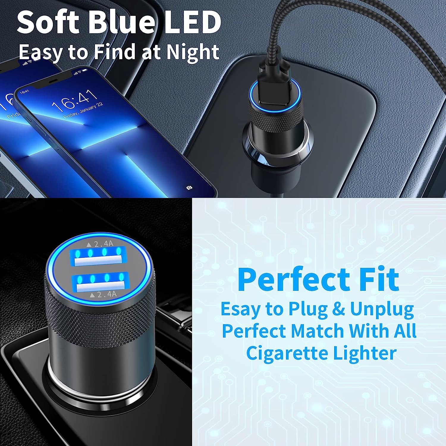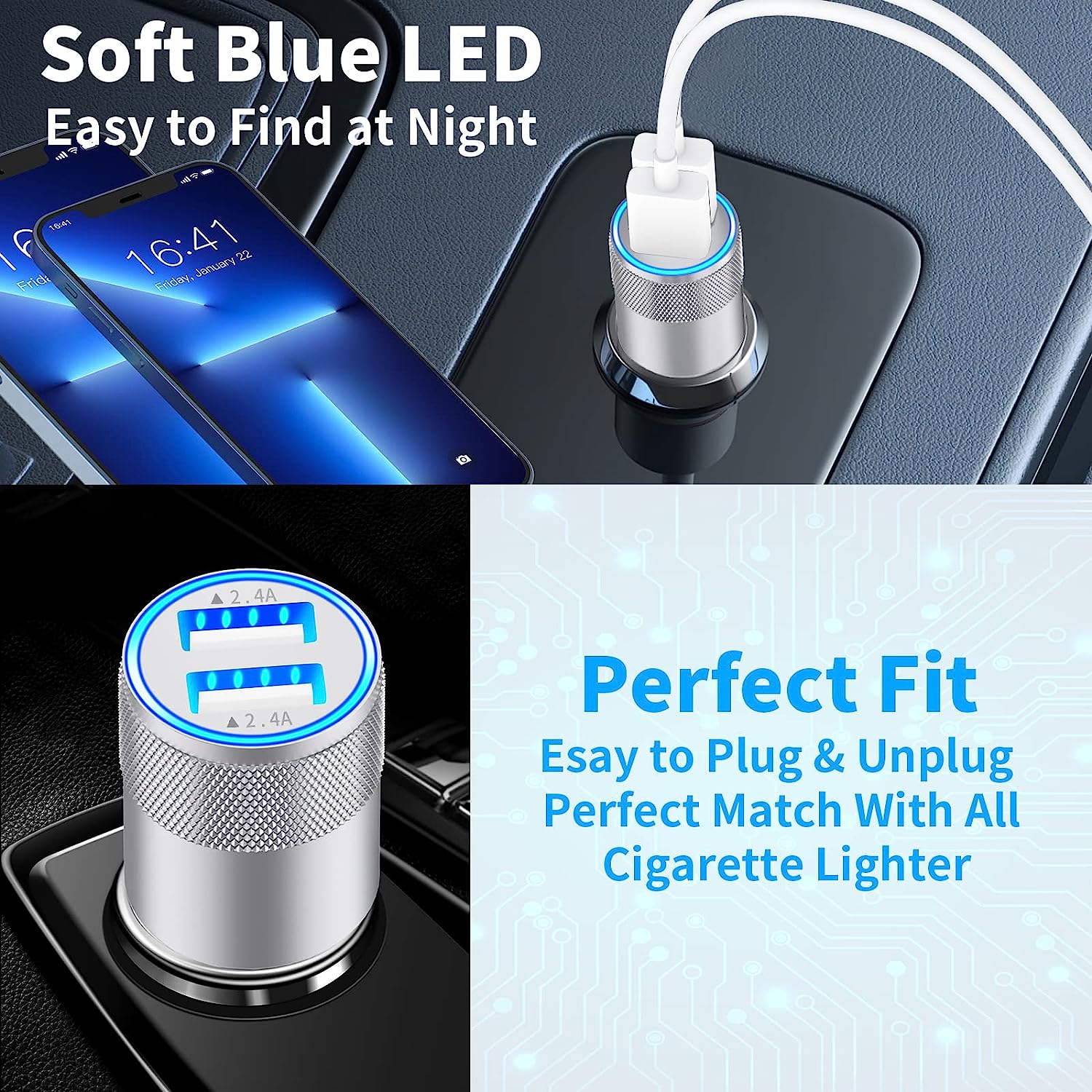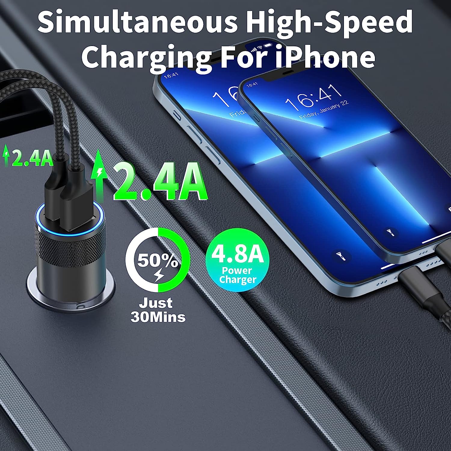 1. Charging two devices simultaneously with this incredibly powerful 24W dual USB car fast charger to match your iPhone device's need.