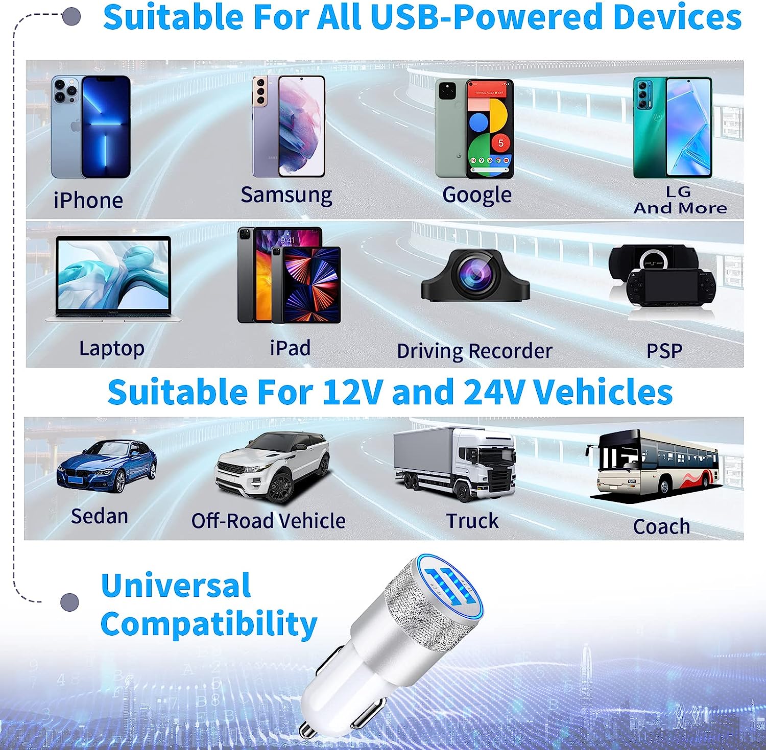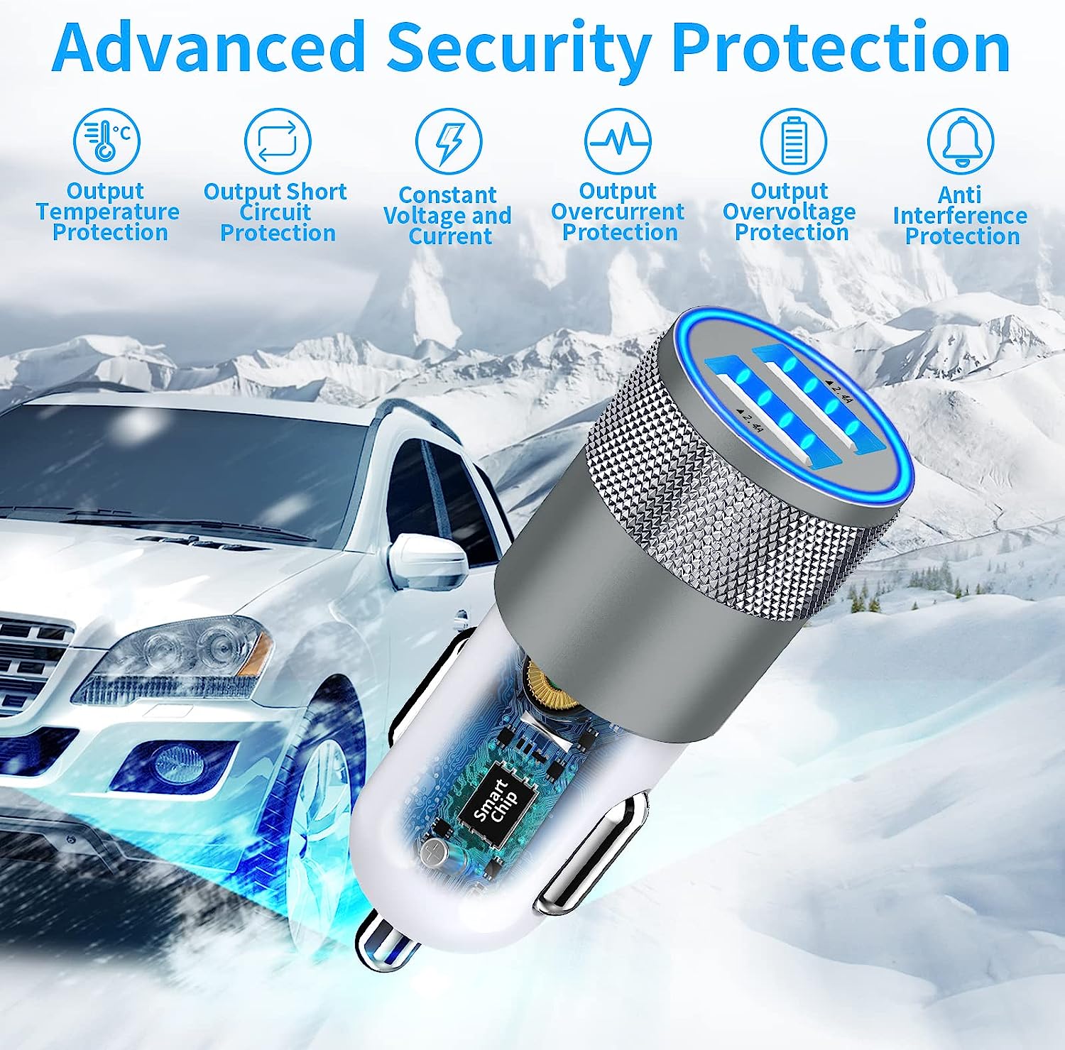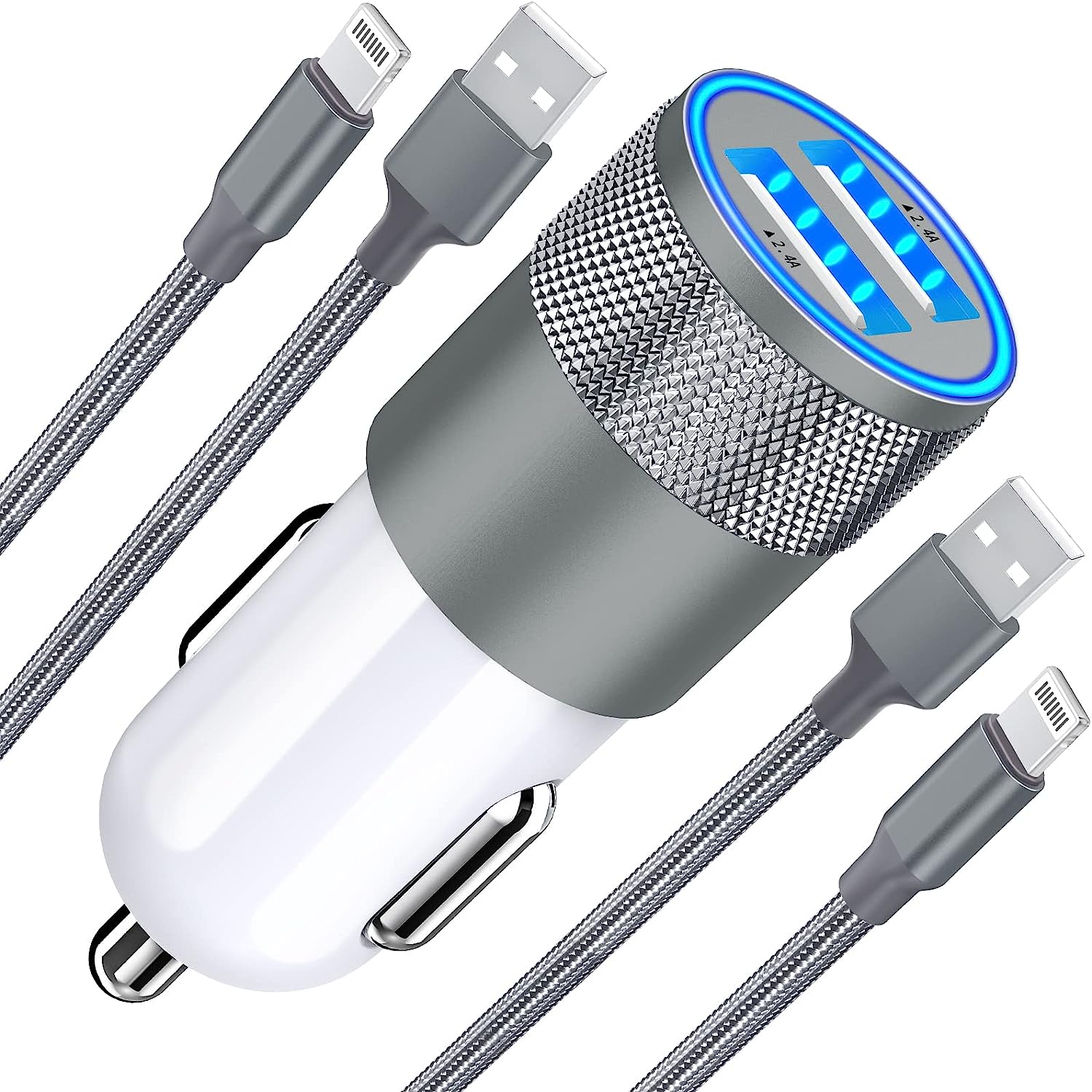1. Charging two devices simultaneously with this incredibly powerful 24W dual USB car fast charger to match your iPhone device's need.