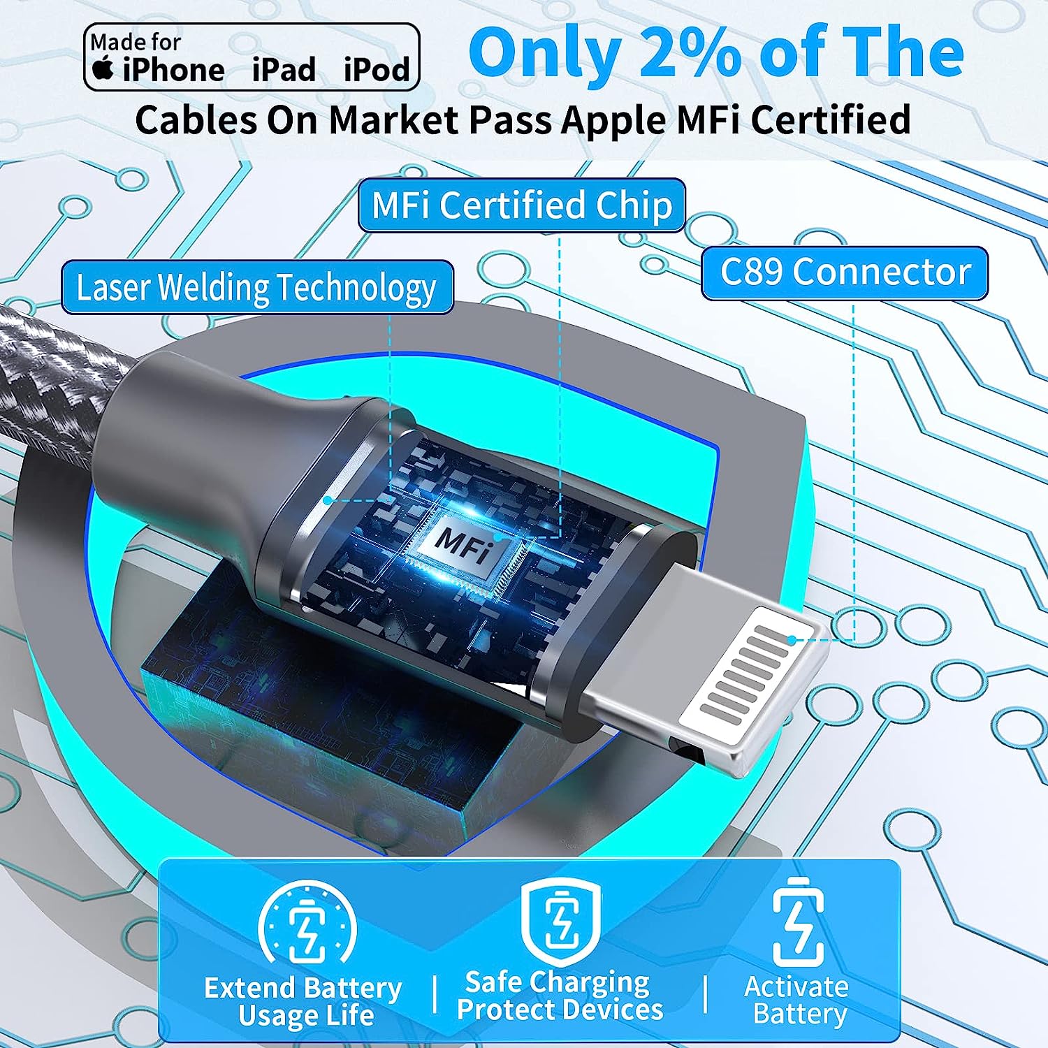 1. USB to Lightning cable with C89 Chip, Built with Latest C89 Terminal and Smart Chip to Ensure a completely compatibility with iOS system.