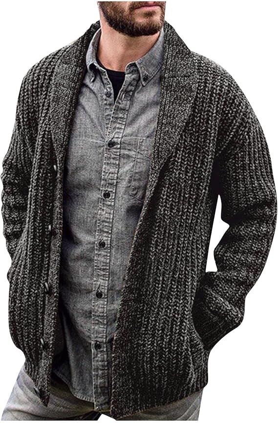 Cardigan Mens Sweater Casual Stylish Shawl Collar Cardigan Cable Knitted Button Up Cardigan Sweaters