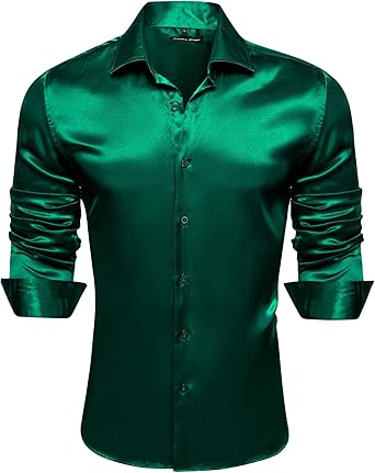 Barry.Wang Men's Button Down Shirt Business Casual Long Sleeve Silk Shirts Formal Wrinkle-Free Stretch Dress Shirts Tops
