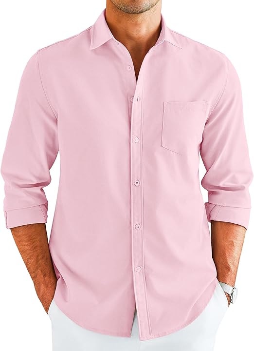 COOFANDY Men's Button Down Long Sleeve Shirt Casual Untucked Dress Shirt Regular Fit Wedding Shirts