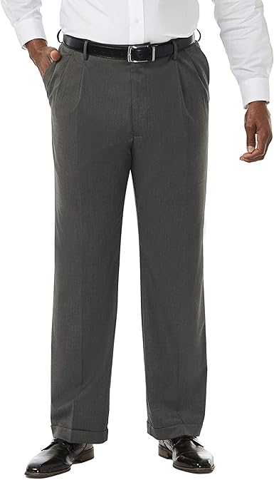 Haggar Men's Big & Tall Premium Stretch Solid Expandable Waist Plain Front Dress Pant