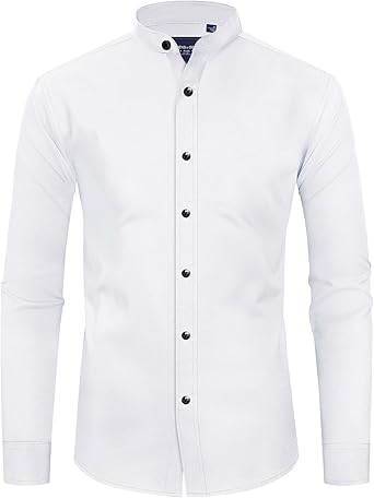 Alimens & Gentle Men's Banded Collar Dress Shirts Long Sleeve Mandarin Collar Button Down Shirt with pocket