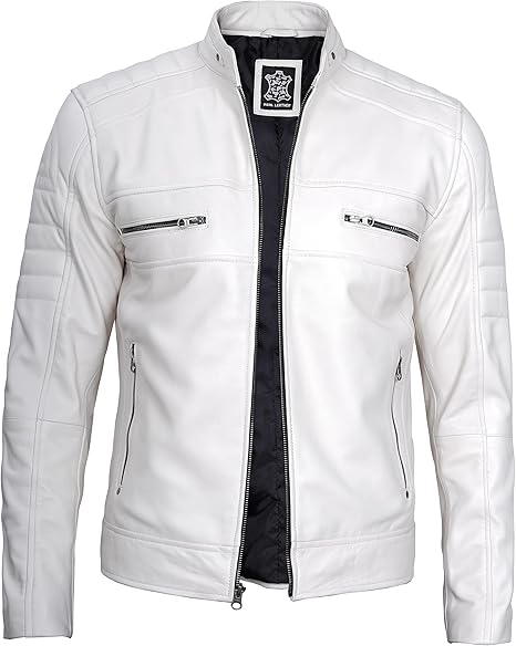 fjackets Cafe Racer Leather Jacket Men - Real Lambskin Leather Biker Motorcycle Jackets For Mens