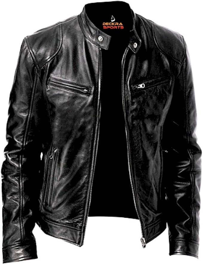 Mens Genuine Leather Jacket Cowhide Motorbike Motorcycle Moto-Jacket Real Leather Black/Brown