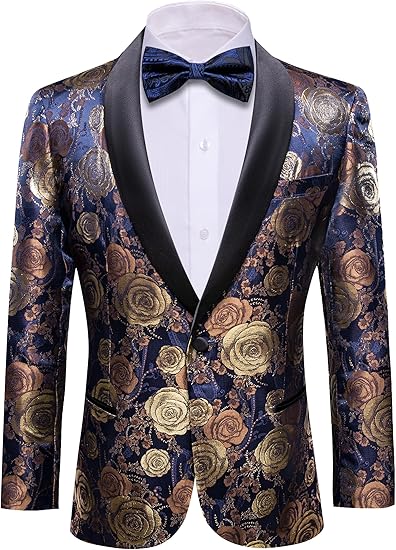 Barry. Wang Men's Sport Coats & Blazers Lightweight Floral Suit Jacket 1 Button Tuxedo Regular Fit Casual Wedding Blazer