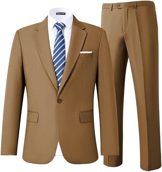 Men 2 Piece Suit Slim Fit Prom Wedding Business Solid Suit Notch Lapel One Button Blazer and Pants Tuxedo Set