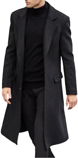 chouyatou Men's Fall Winter Office Single Breasted Long Dress Wool Coat Overcoat